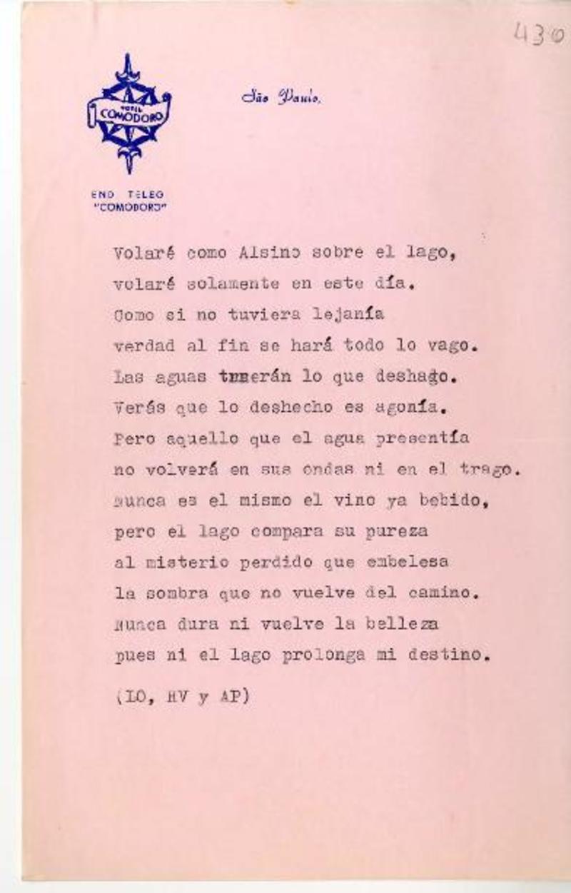 [Volaré como Alsino sobre el lago] [manuscrito] Luis Oyarzún, Hernán Valdés y Andrés Pizarro.