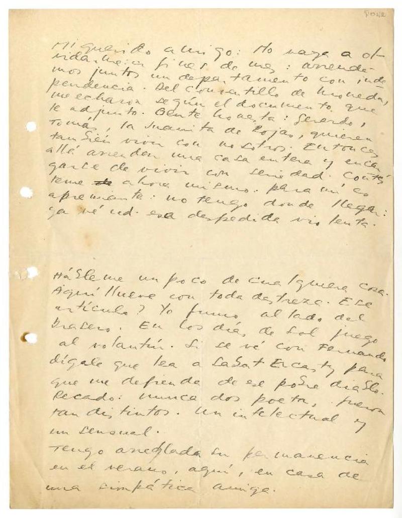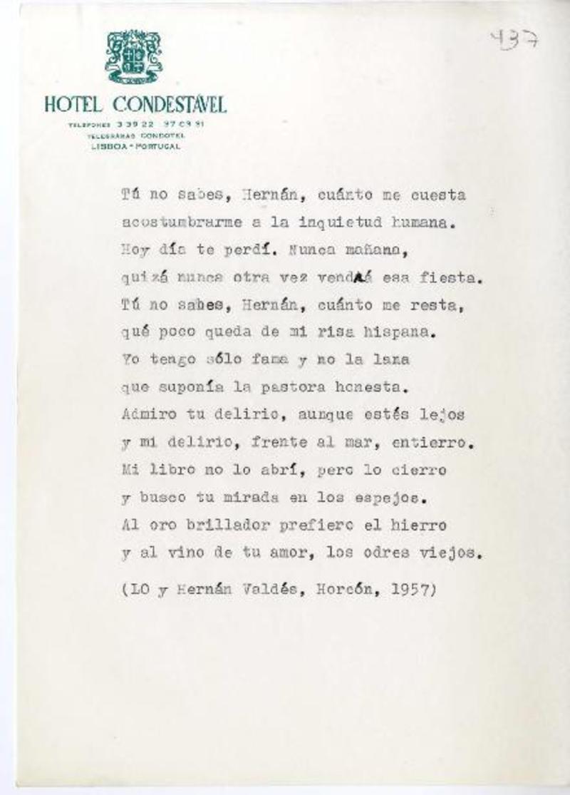 Vieja casa sin hijos... [manuscrito] Oscar Castro.