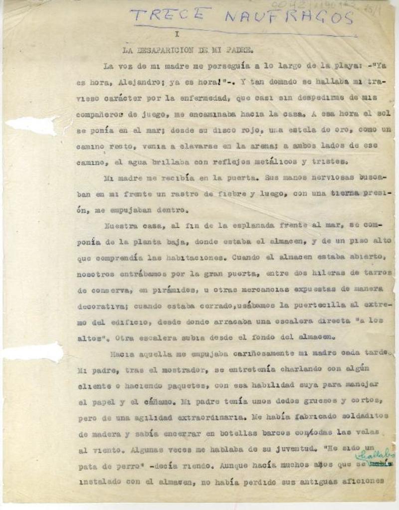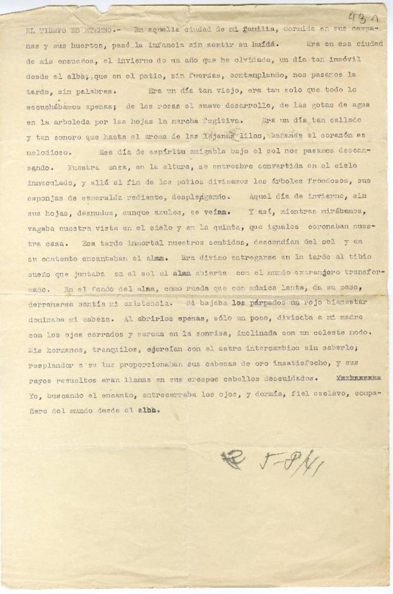 [Al fondo de sus ojos todavía flotaba ...] [manuscrito] Oscar Castro.