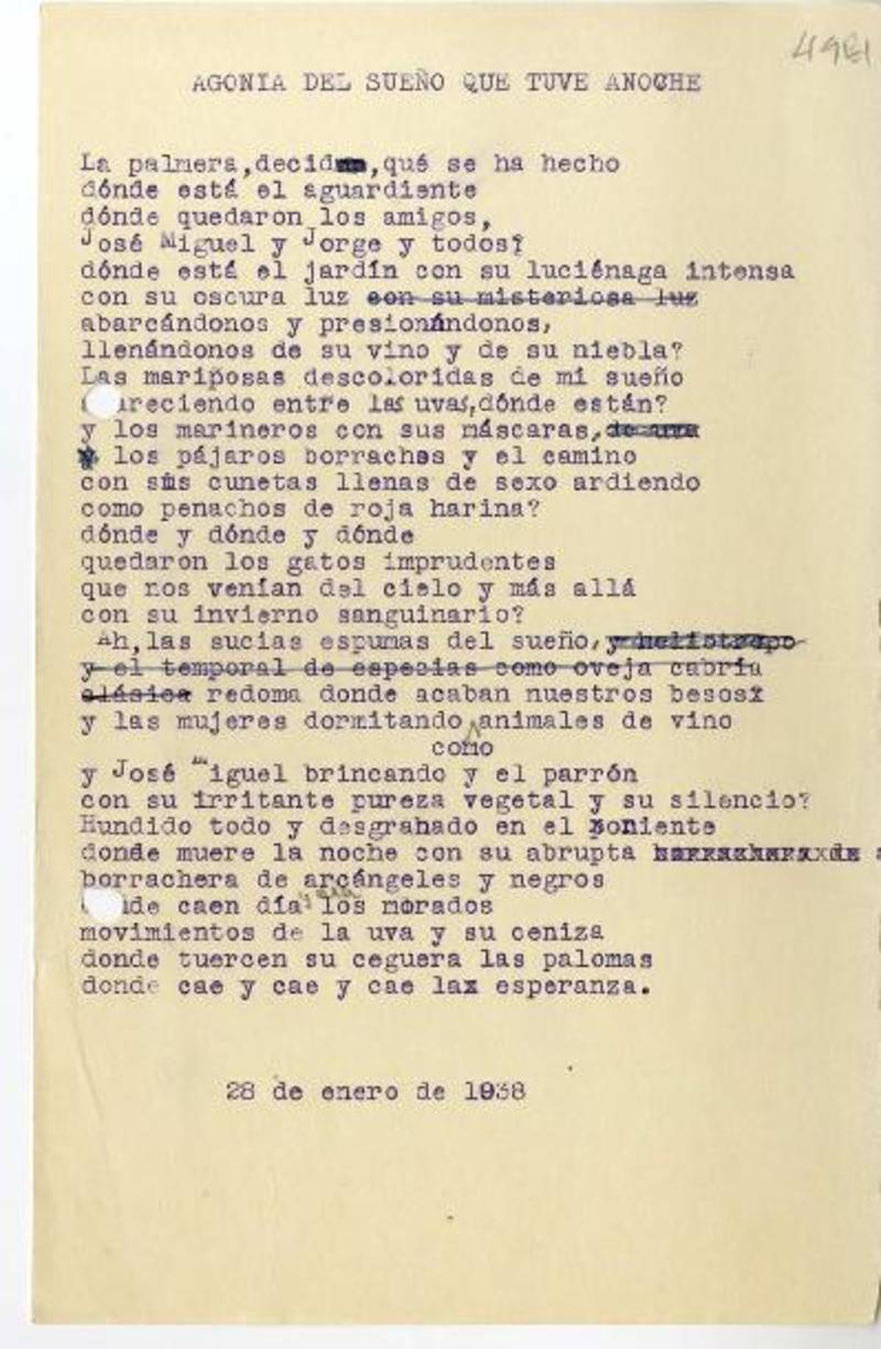 Agonía del sueño que tuve anoche [manuscrito] Luis Oyarzún.