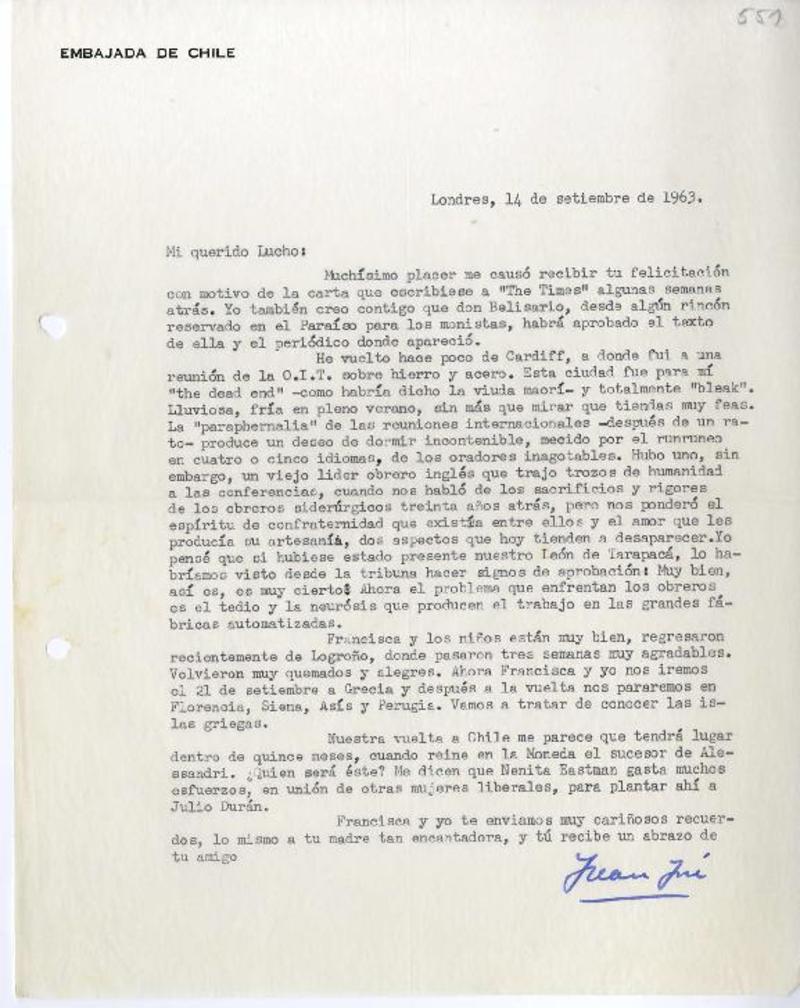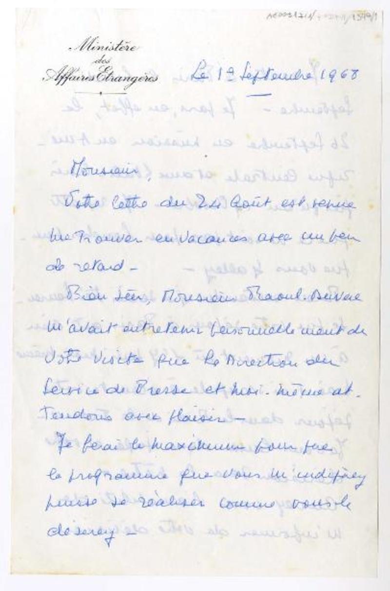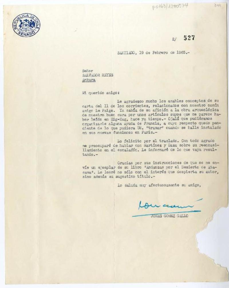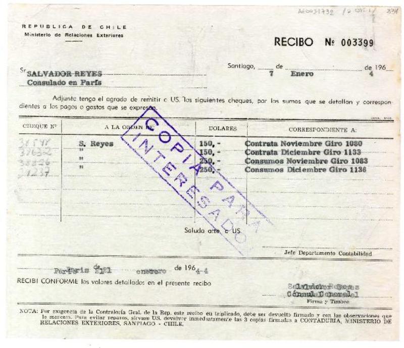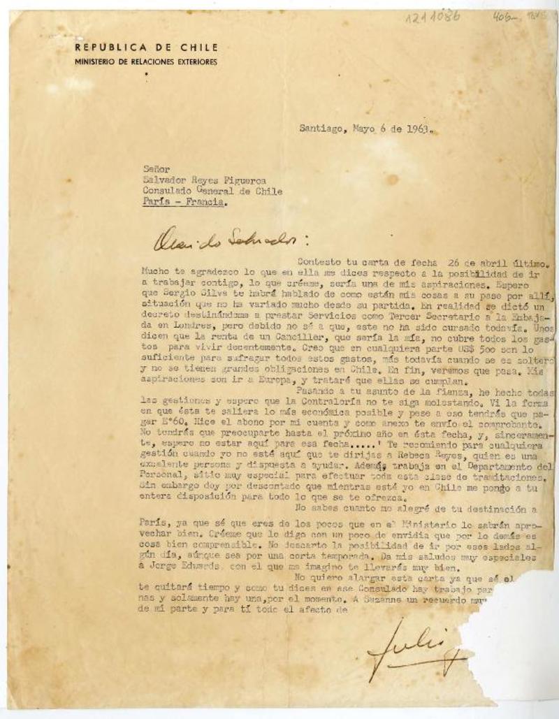 Ankara, Turquia y Paris, Francia [a] Ministerio de Relaciones Exteriores (Chile) Oficios, Entre enero y julio de 1963, [manuscrito] Salvador Reyes.