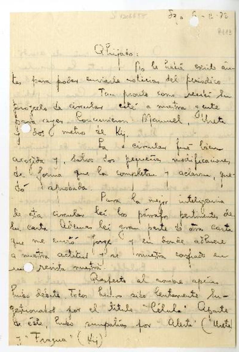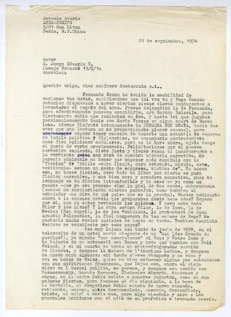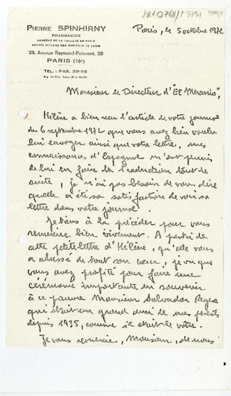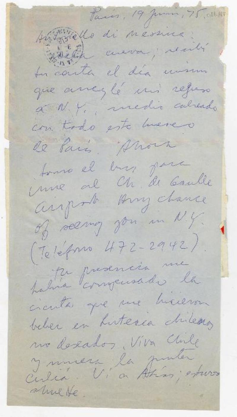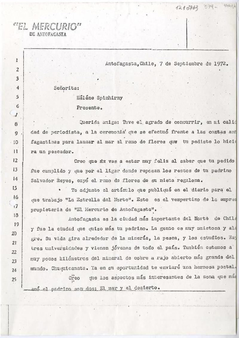 Antofagasta, Santiago, Chile [a] Héléne Spinhirny, Paris, Francia Cartas, entre 1972 y 1975, [manuscrito] Varios autores.