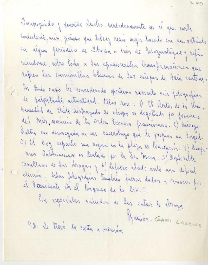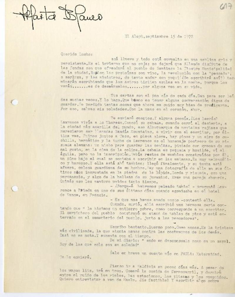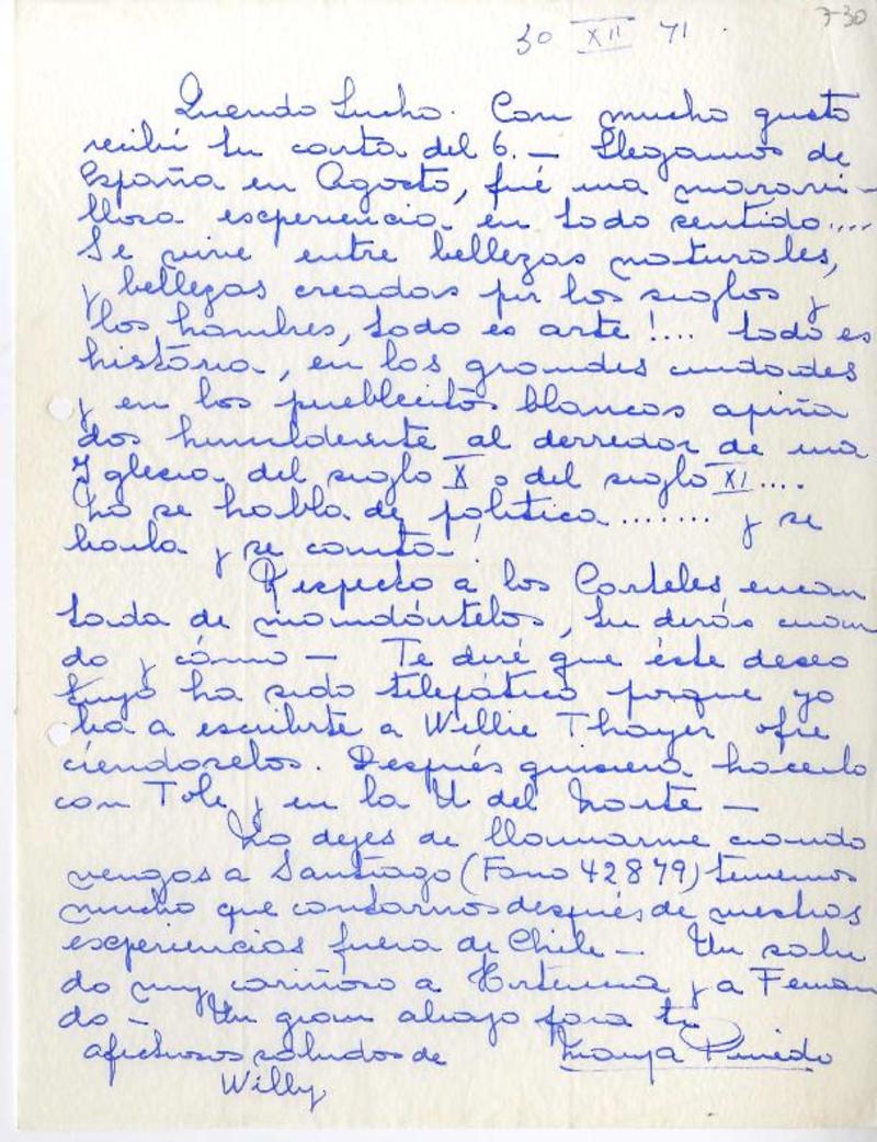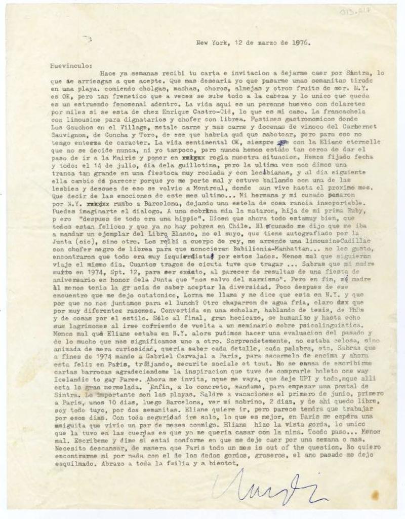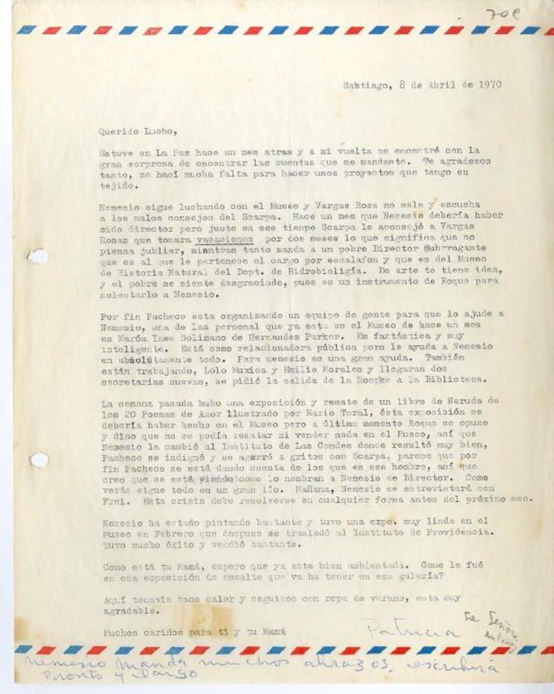 Antofagasta, Santiago, Chile [a] Héléne Spinhirny, Paris, Francia Cartas, entre 1972 y 1975, [manuscrito] Varios autores.