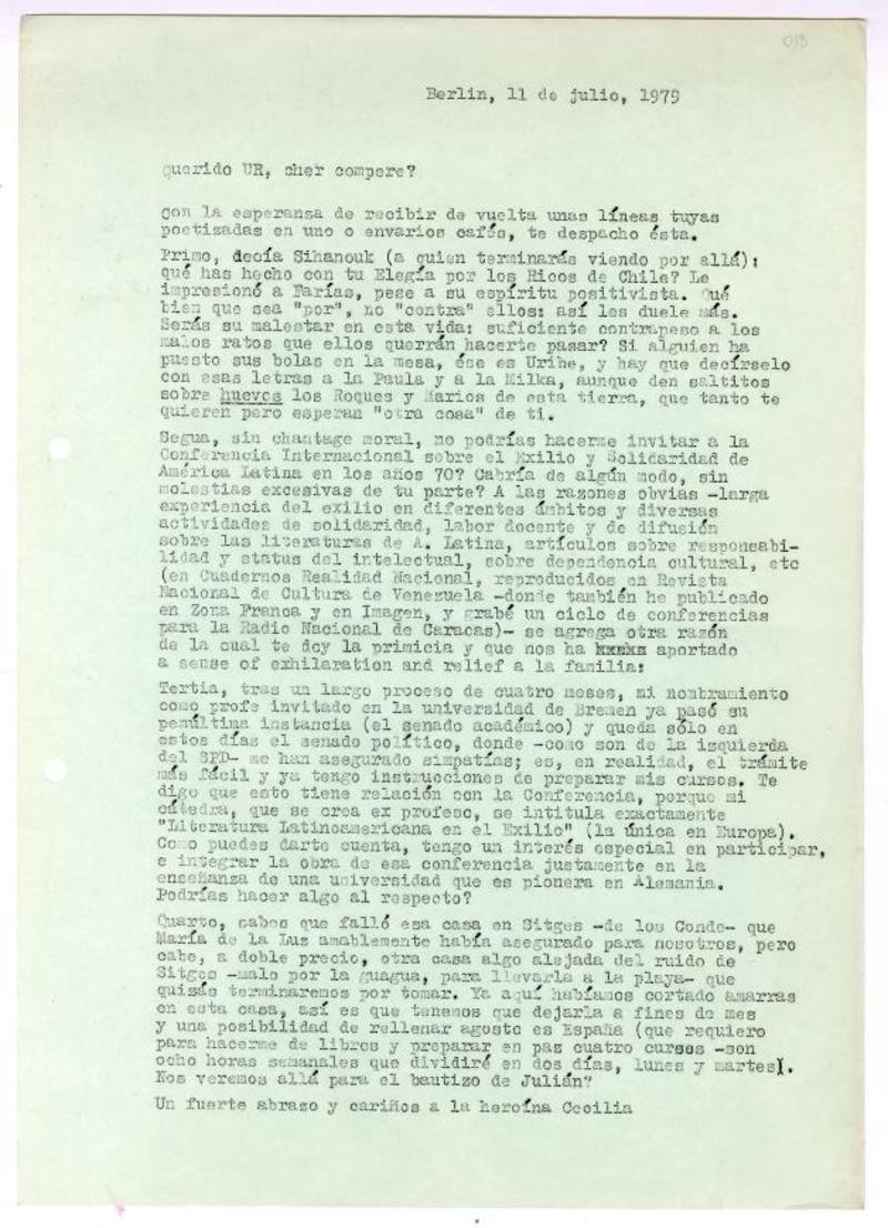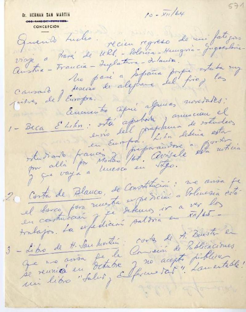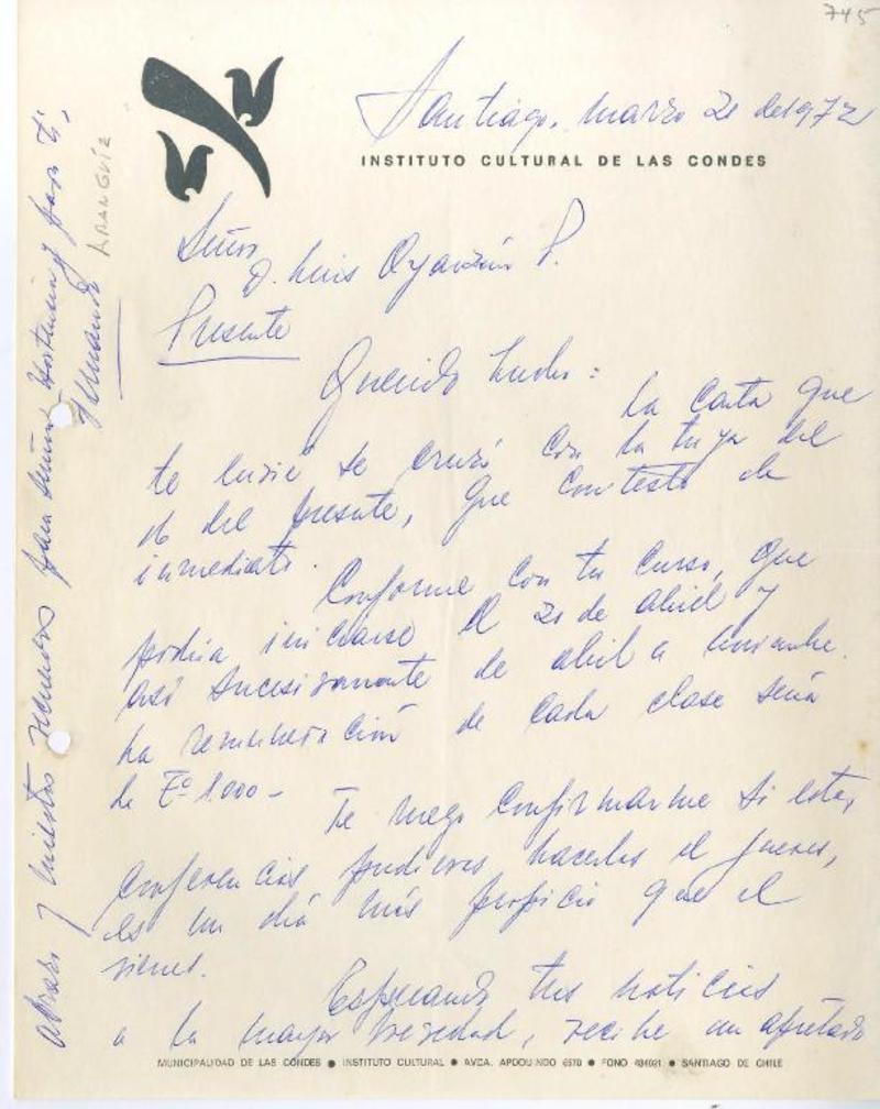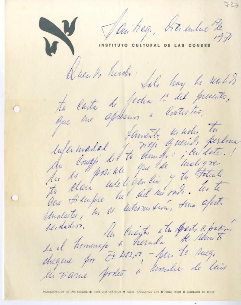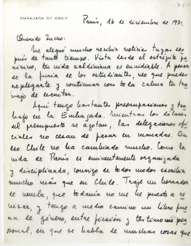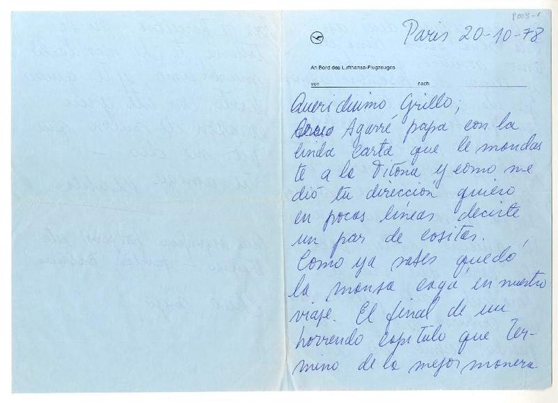 Antofagasta, Santiago, Chile [a] Héléne Spinhirny, Paris, Francia Cartas, entre 1972 y 1975, [manuscrito] Varios autores.
