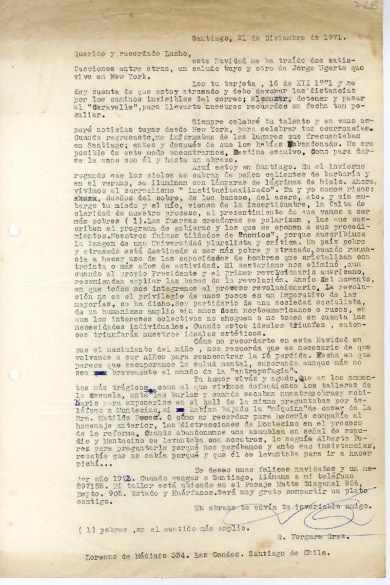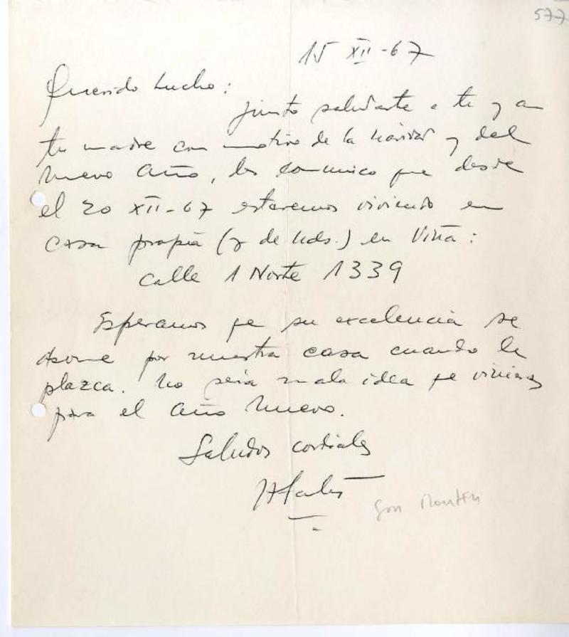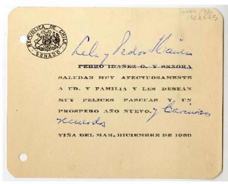 Viña del Mar, Chile [a] Salvador Reyes Tarjeta, 1969 diciembre, [manuscrito] Pedro Ibáñez Ojeda.