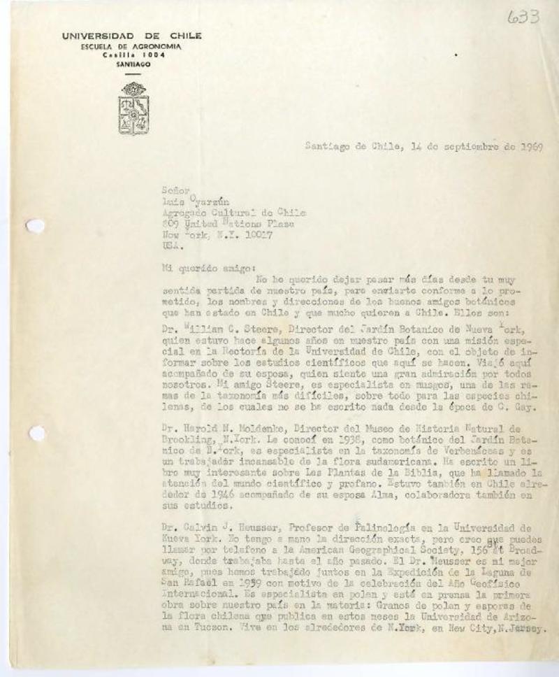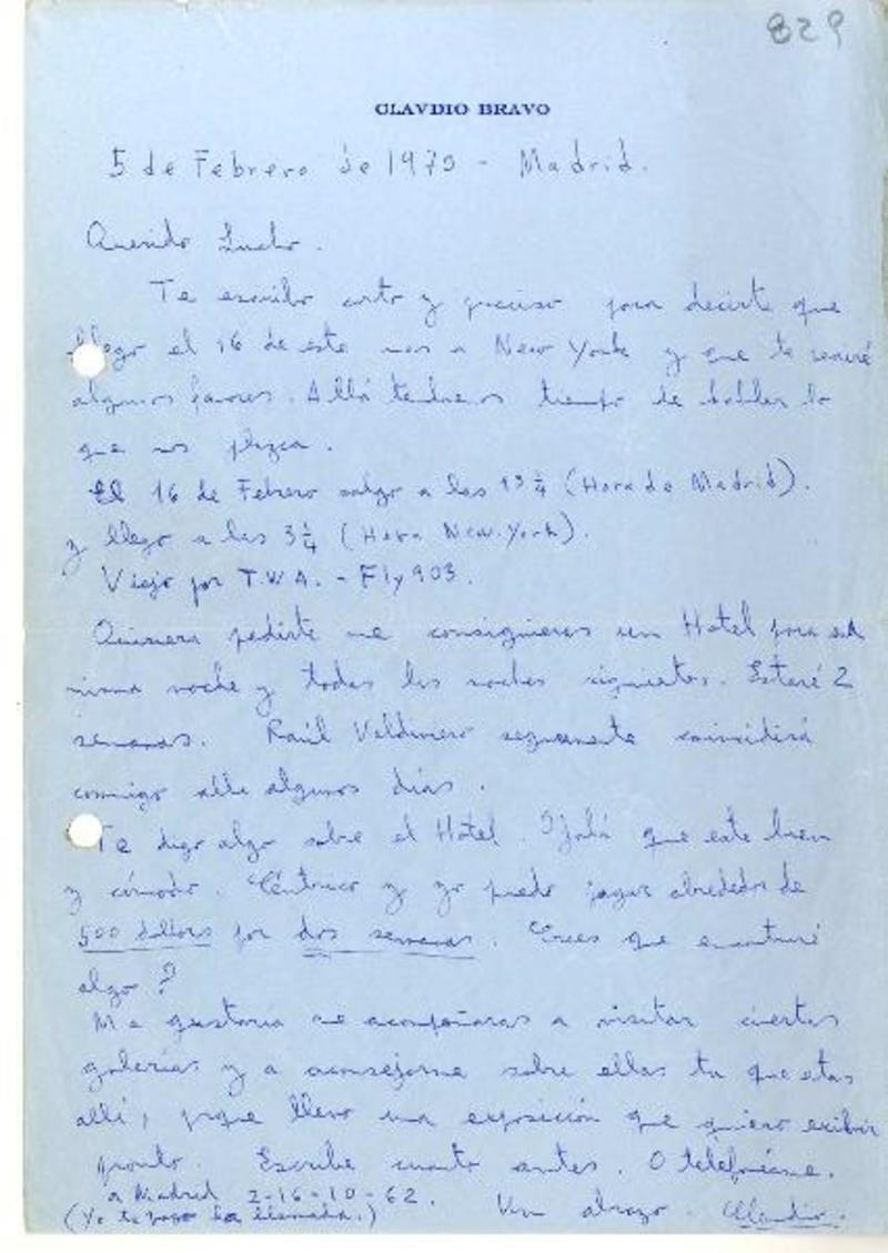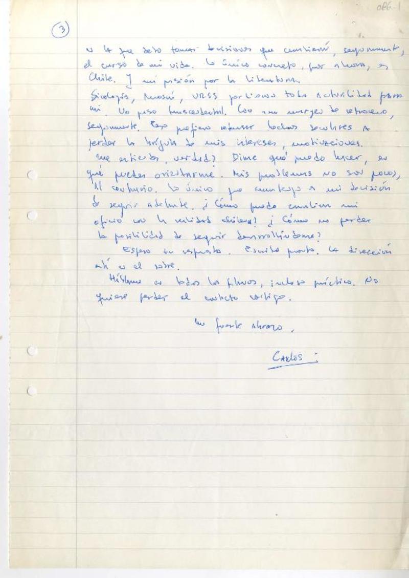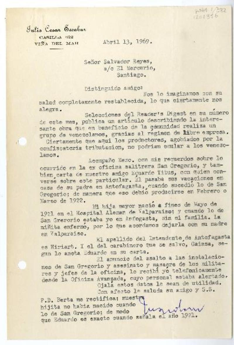 Viña del Mar, Chile [a] Salvador Reyes, Santiago, Chile Cartas, abril y octubre de 1969 y febrero de 1970, [manuscrito] Julio César Escobar.