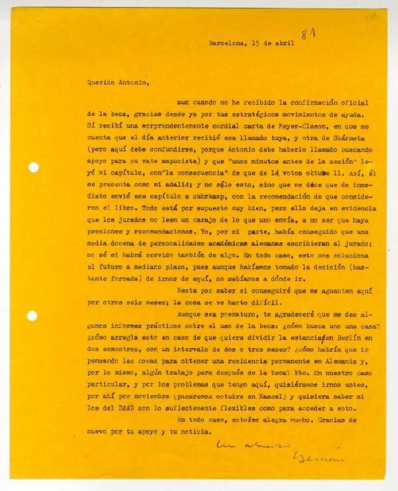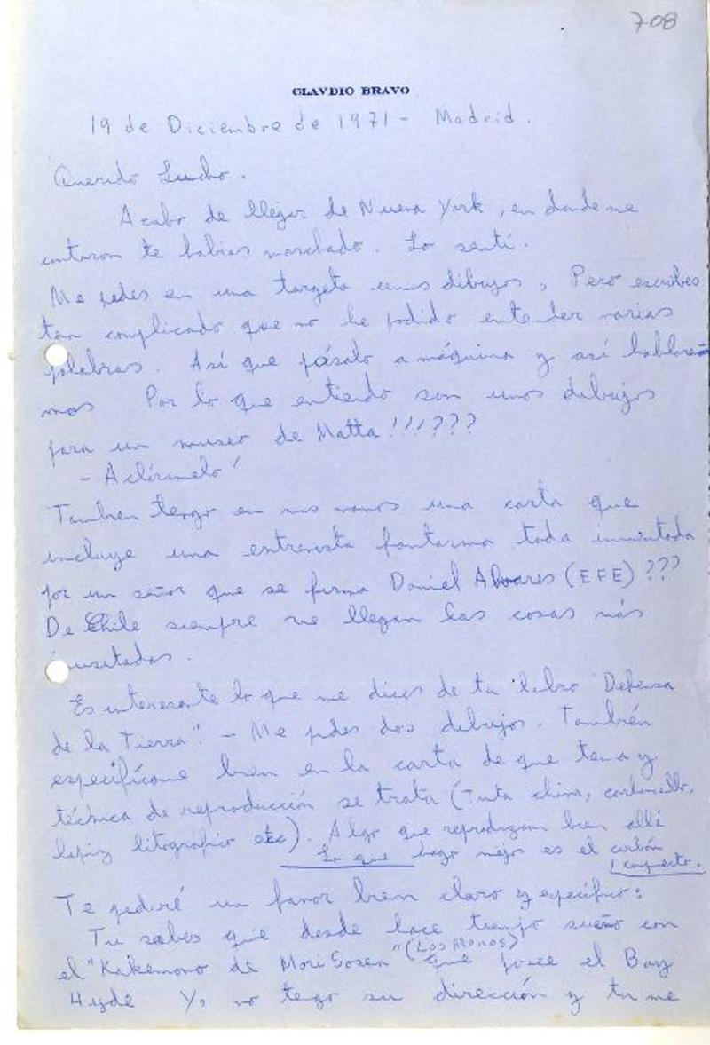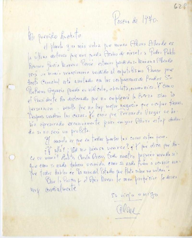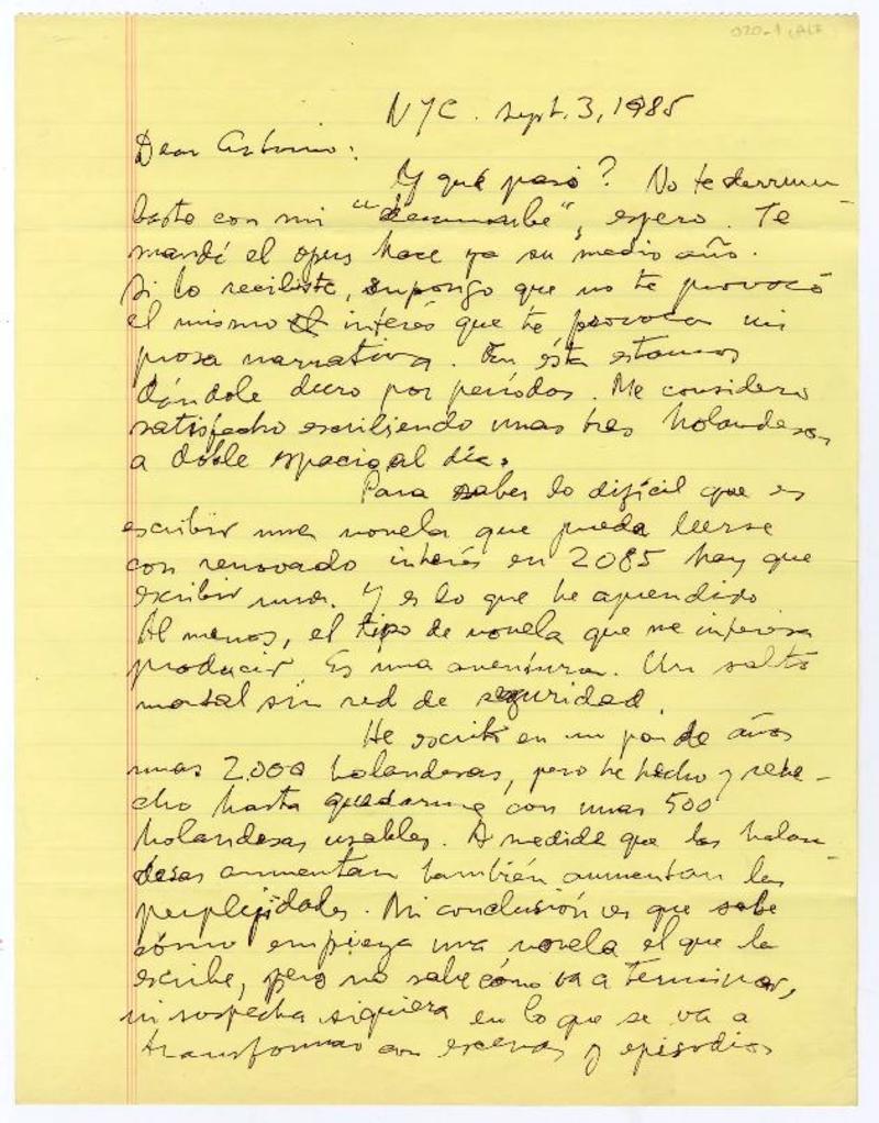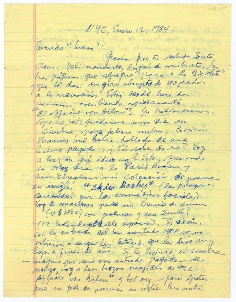 Viña del Mar, Chile [a] Salvador Reyes, Santiago, Chile Cartas, abril y octubre de 1969 y febrero de 1970, [manuscrito] Julio César Escobar.