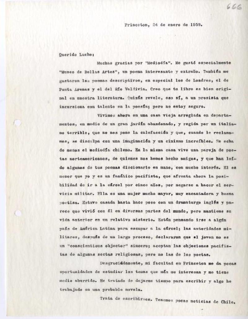 Castro, Óscar - Correspondencia - Autores chilenos - Fitts, Dudley - Manuscritos norteamericanos