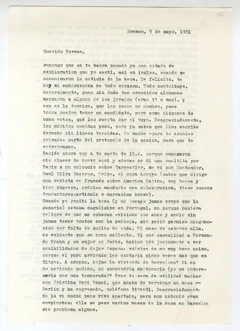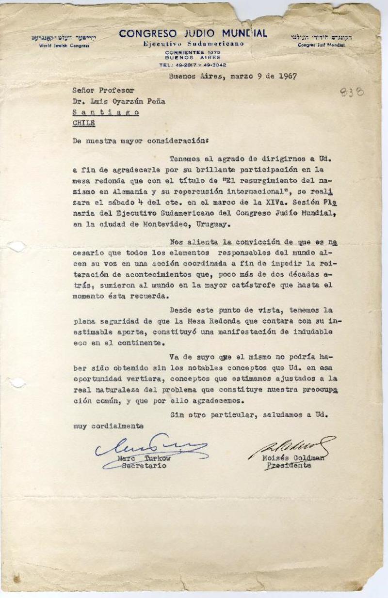 Autores alemanes - Manuscritos alemanes - Hochheimer, F. - Correspondencia - Autores chilenos - Reyes, Salvador