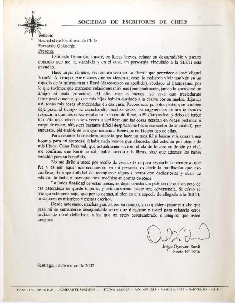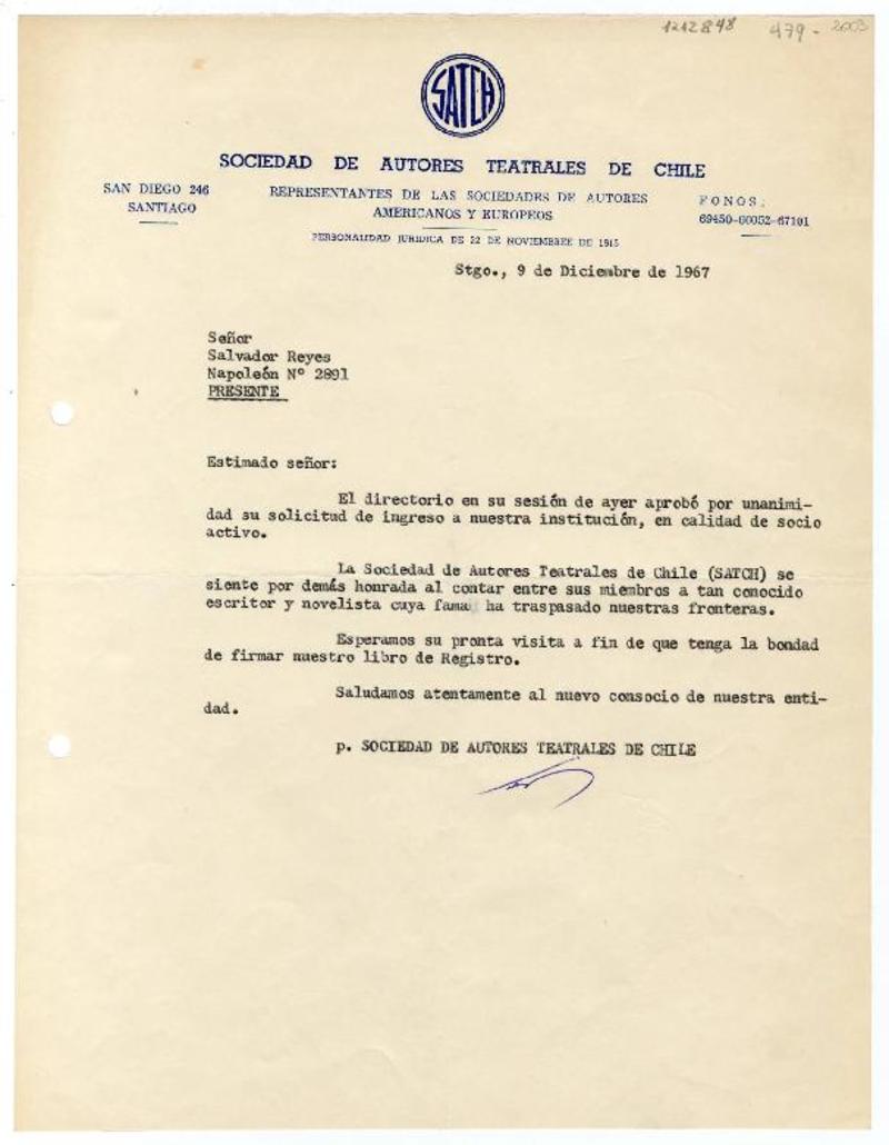 Correspondencia - Manuscritos chilenos - Reyes, Salvador - Autores chilenos