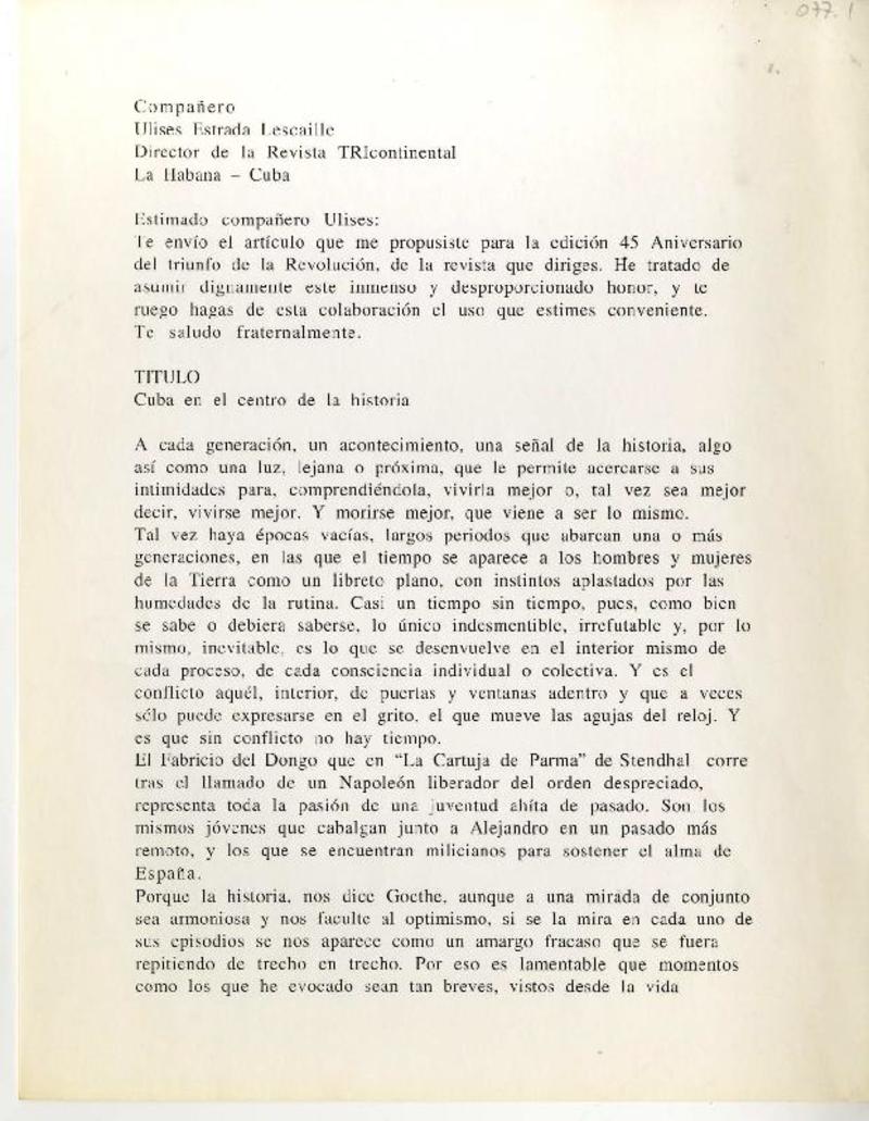 Relatos personales - Novelas chilenas - Manuscritos chilenos - Historia - Cuba