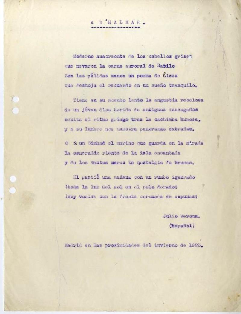 D'Halmar, Augusto - Poesías españolas - Manuscritos españoles