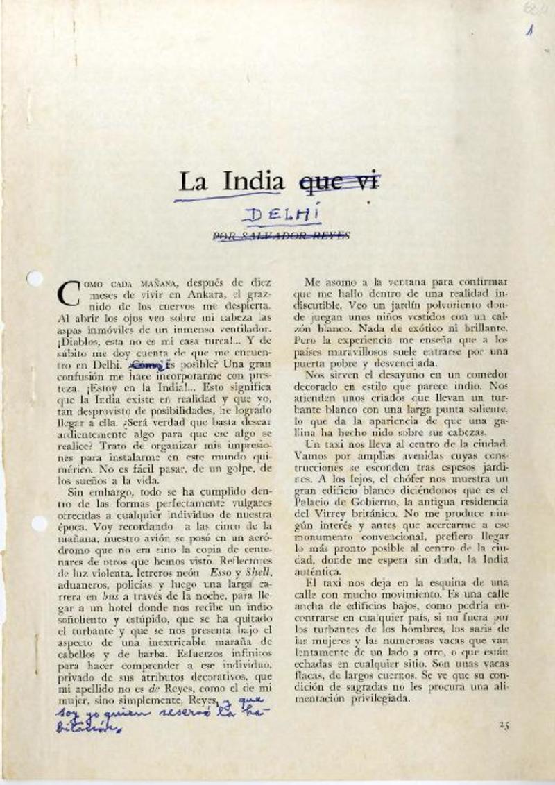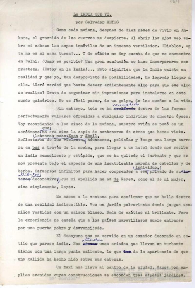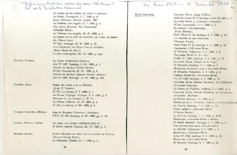 Manuscritos chilenos - Reyes, Salvador - Artículos
