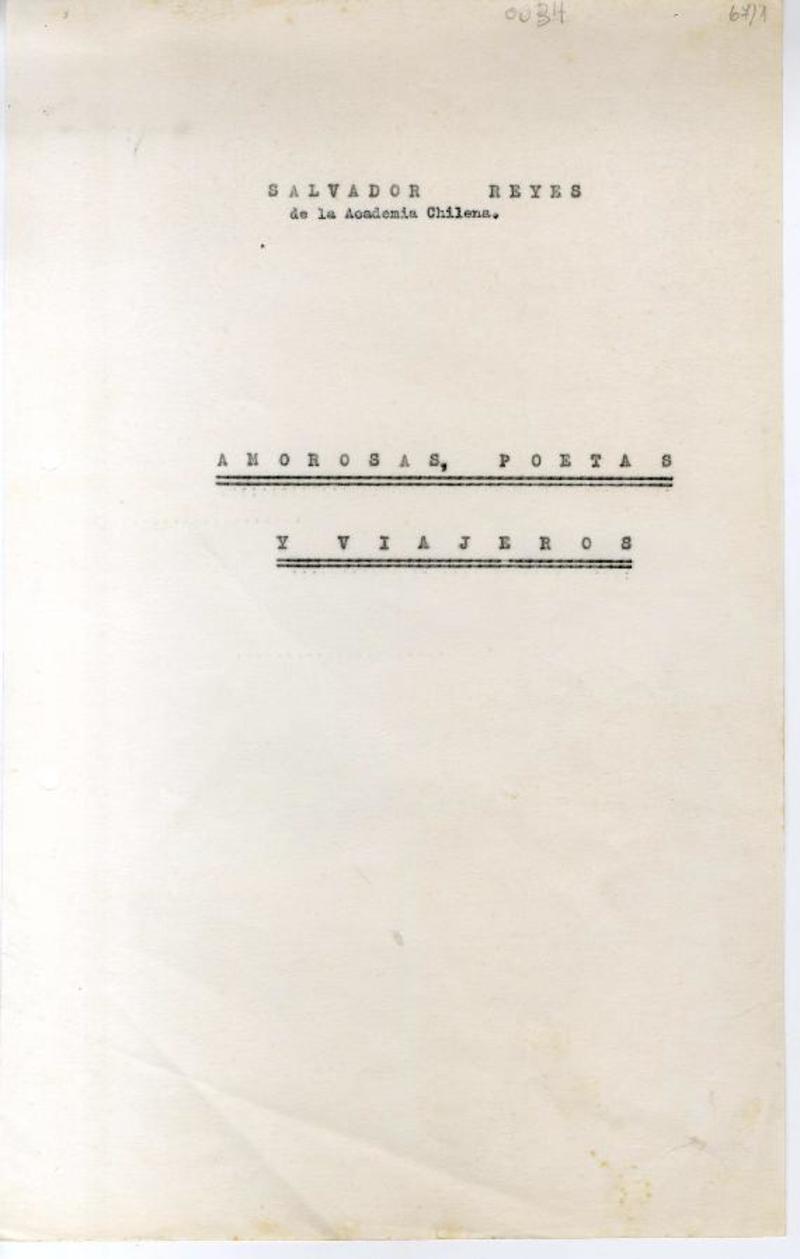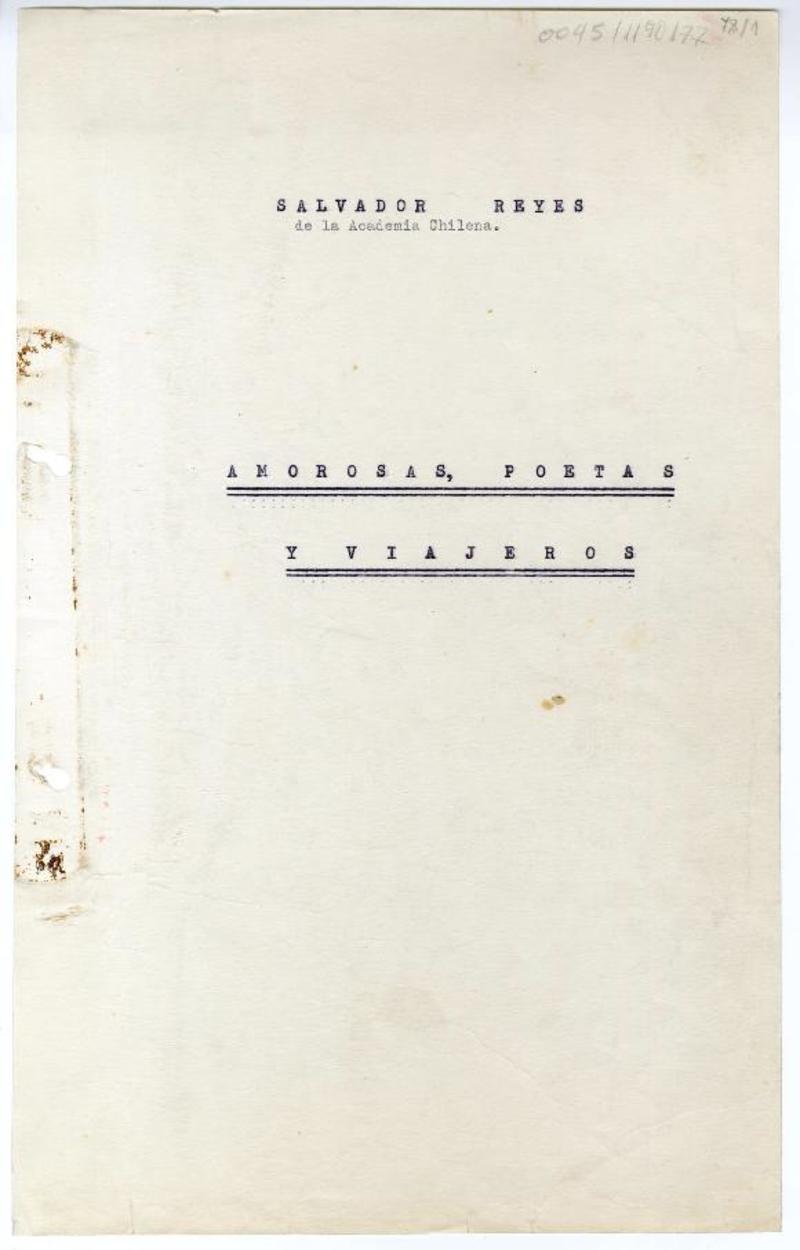 Amorosas, poetas y viajeros [manuscrito] Salvador Reyes.