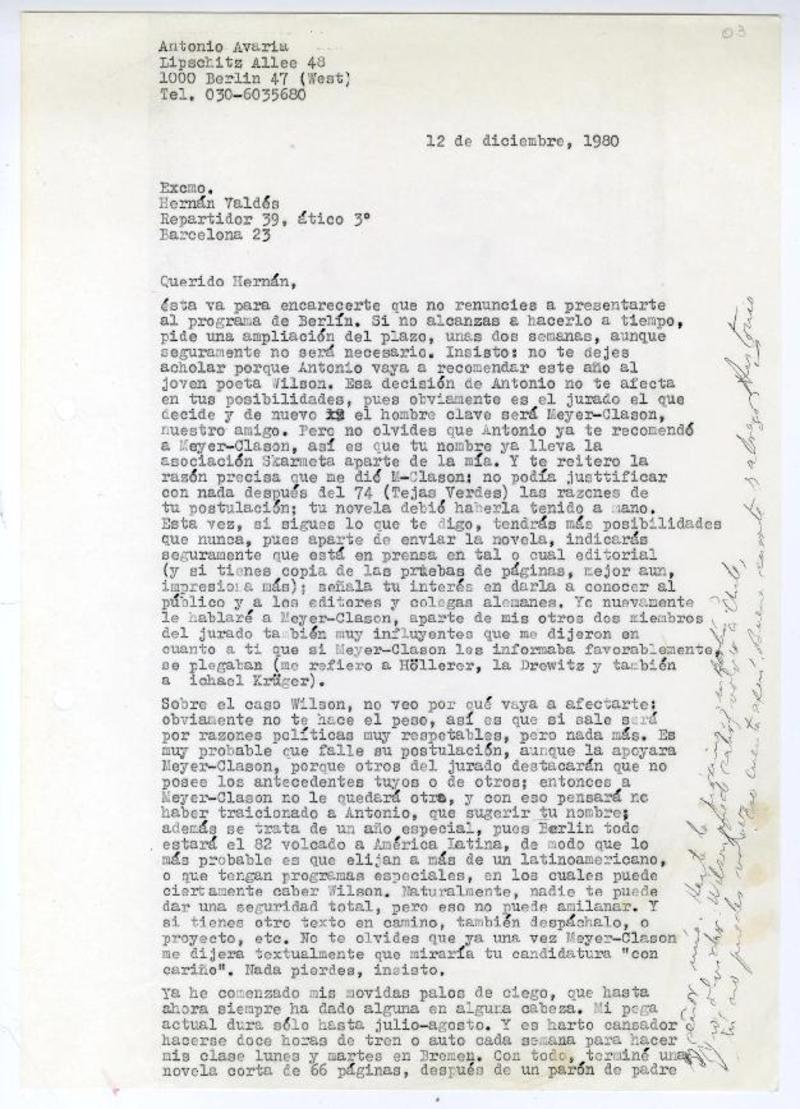 Valparaíso, Chile [a] Solicitud del interesado Carta, 1985 marzo 28, [manuscrito] Eduardo Barison Roberts.
