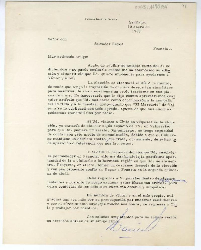 Valparaíso, Chile [a] Salvador Reyes Cartas, 1949, 1951 y 1958, [manuscrito] La Unión.