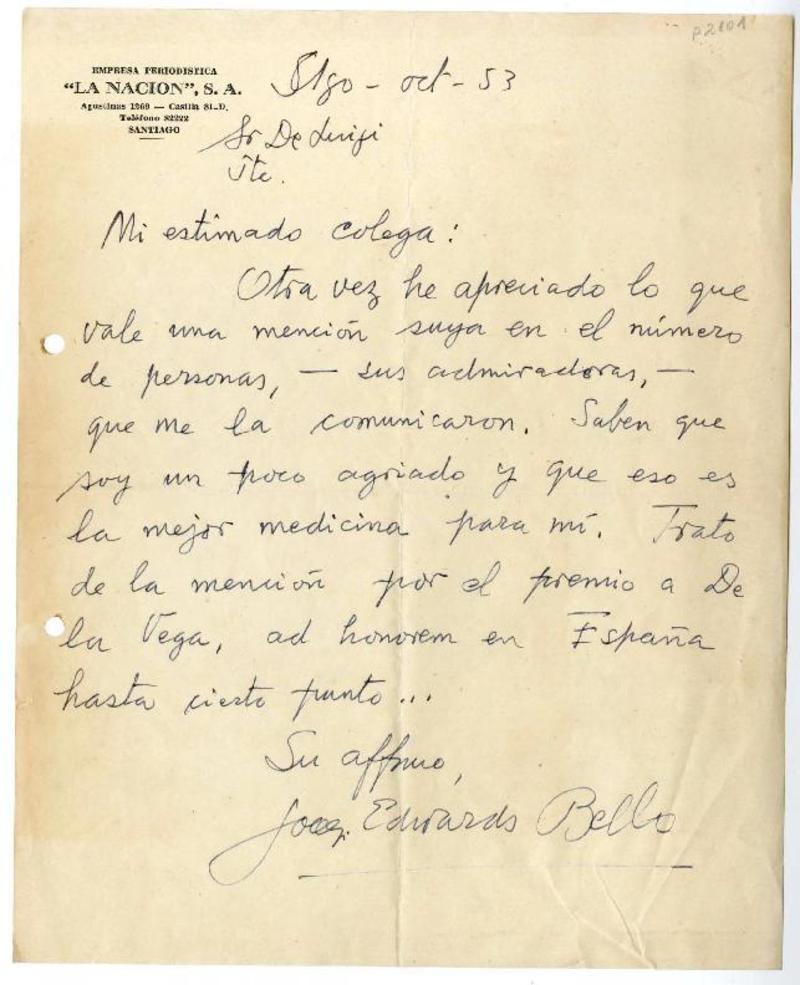 Bello, Enrique - Correspondencia - Manuscritos chilenos - Díaz-Casanueva, Humberto - Autores chilenos