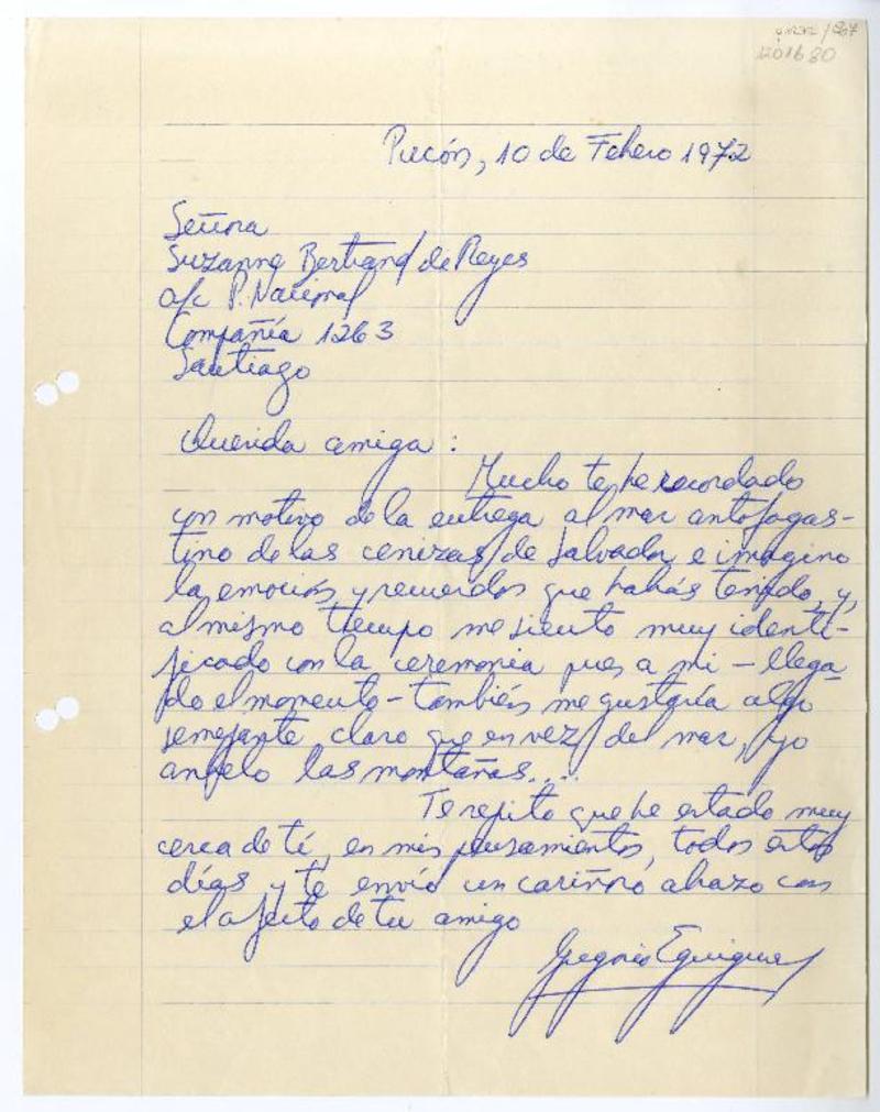 Valparaíso, Chile [a] Suzanne Bertrand Cartas, Entre 1970 y 1976, [manuscrito] Pedro Ibáñez Ojeda.