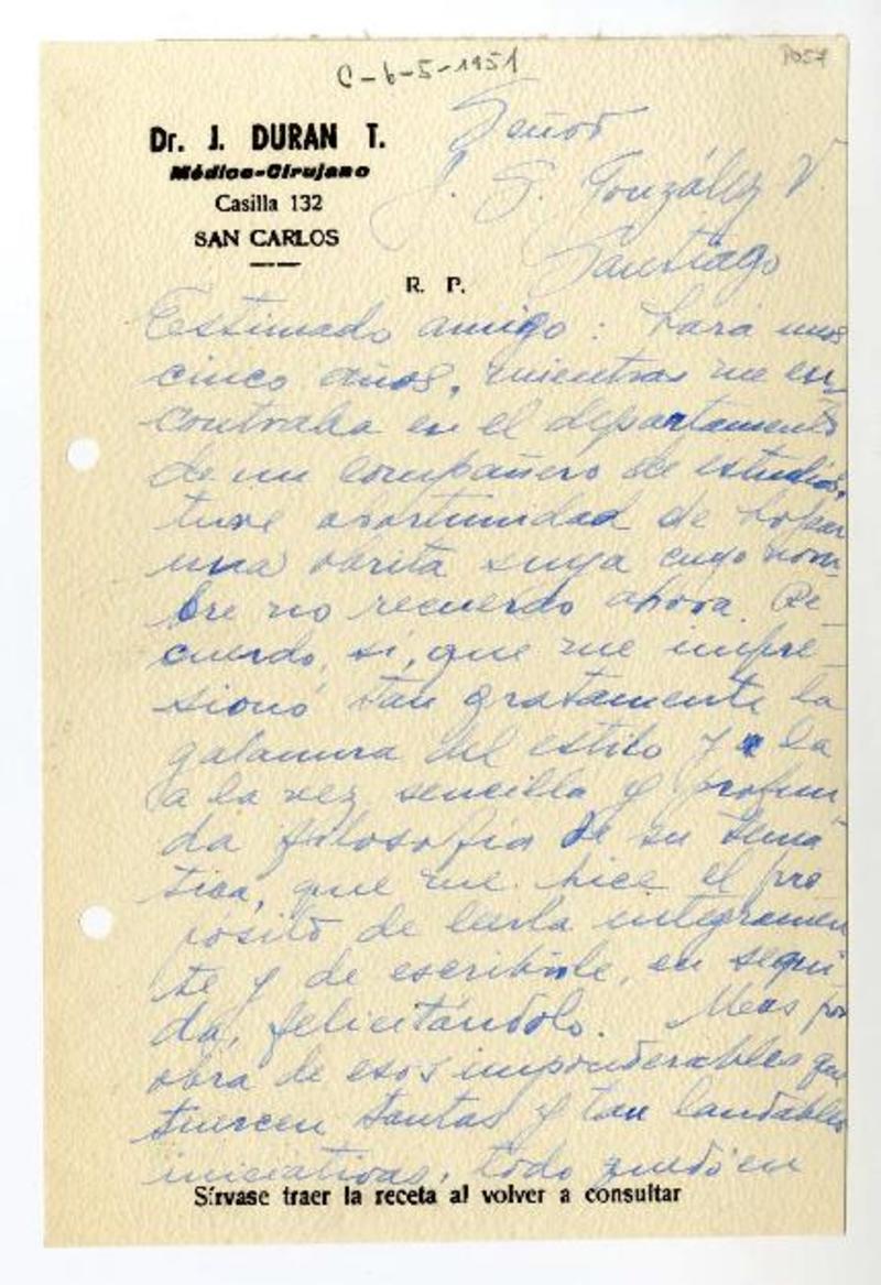 Manuscritos chilenos - Merino Castro, José Toribio - Lazcano Jiménez, Fernando - Correspondencia - Durán V., Fernando