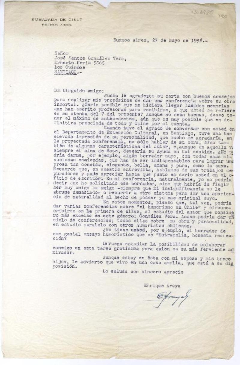 Correspondencia - Manuscritos chilenos - González Vera, José Santos - Escobar Carvallo, Alejandro - Autores chilenos