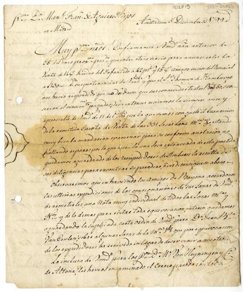Amsterdam [a] Francisco de Aguirre e Hijos Carta, 1799 diciembre 5, [manuscrito]