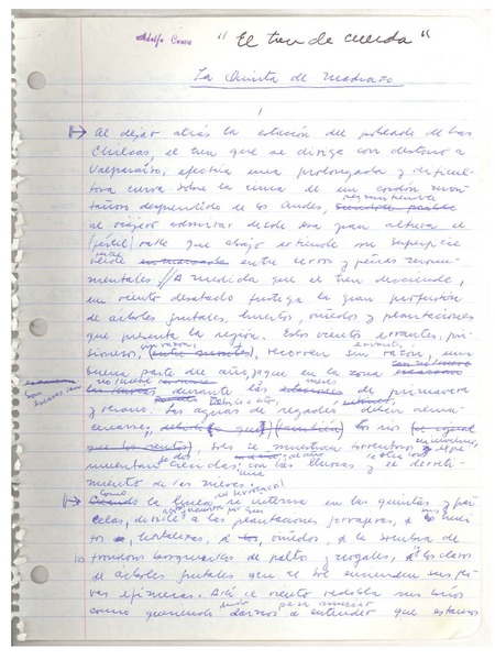 El tren de cuerda [manuscrito] Adolfo Couve.