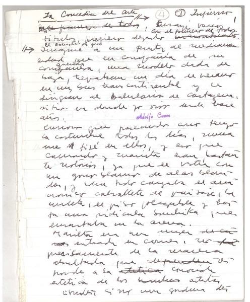 La lección de pintura [manuscrito] Adolfo Couve.