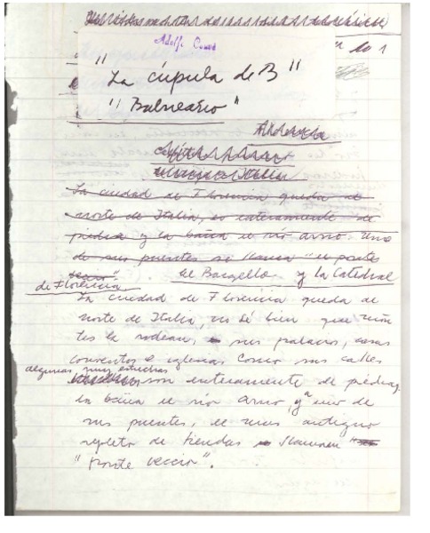 Balneario [manuscrito] Adolfo Couve.