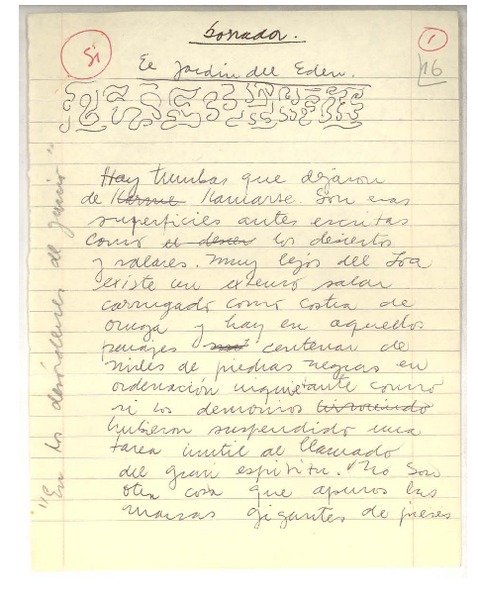 El jardín del edén [manuscrito] Adolfo Couve.