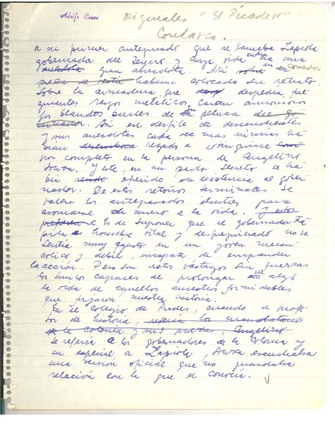 El picadero [manuscrito] Adolfo Couve.