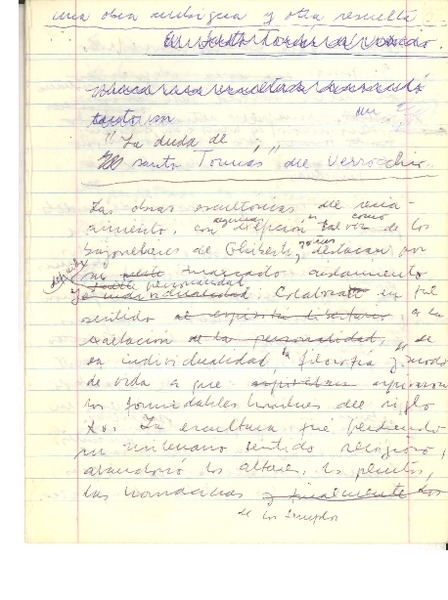 La duda de Santo Tomás de Verrocchio [manuscrito] Adolfo Couve.