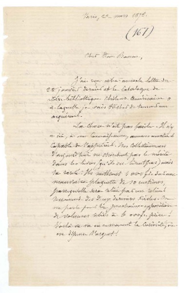 [Carta] 1878 feb. 12, París, Francia [a] Ramón Briseño [manuscrito] Jean Gustave Courcelle-Seneuil.