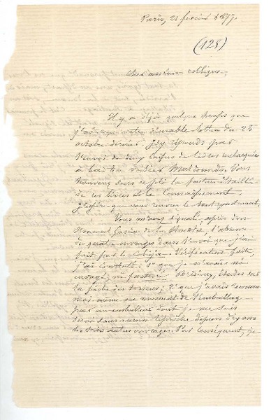 [Carta] 1877 feb. 21, París, Francia [a] Ramón Briseño [manuscrito] Jean Gustave Courcelle-Seneuil.