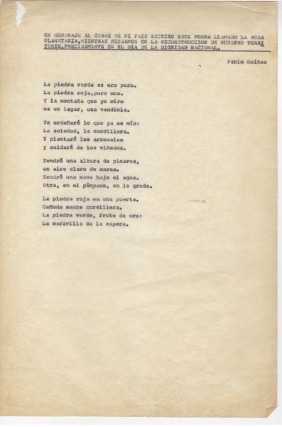 La rosa planetaria [manuscrito] Pablo Guiñez.