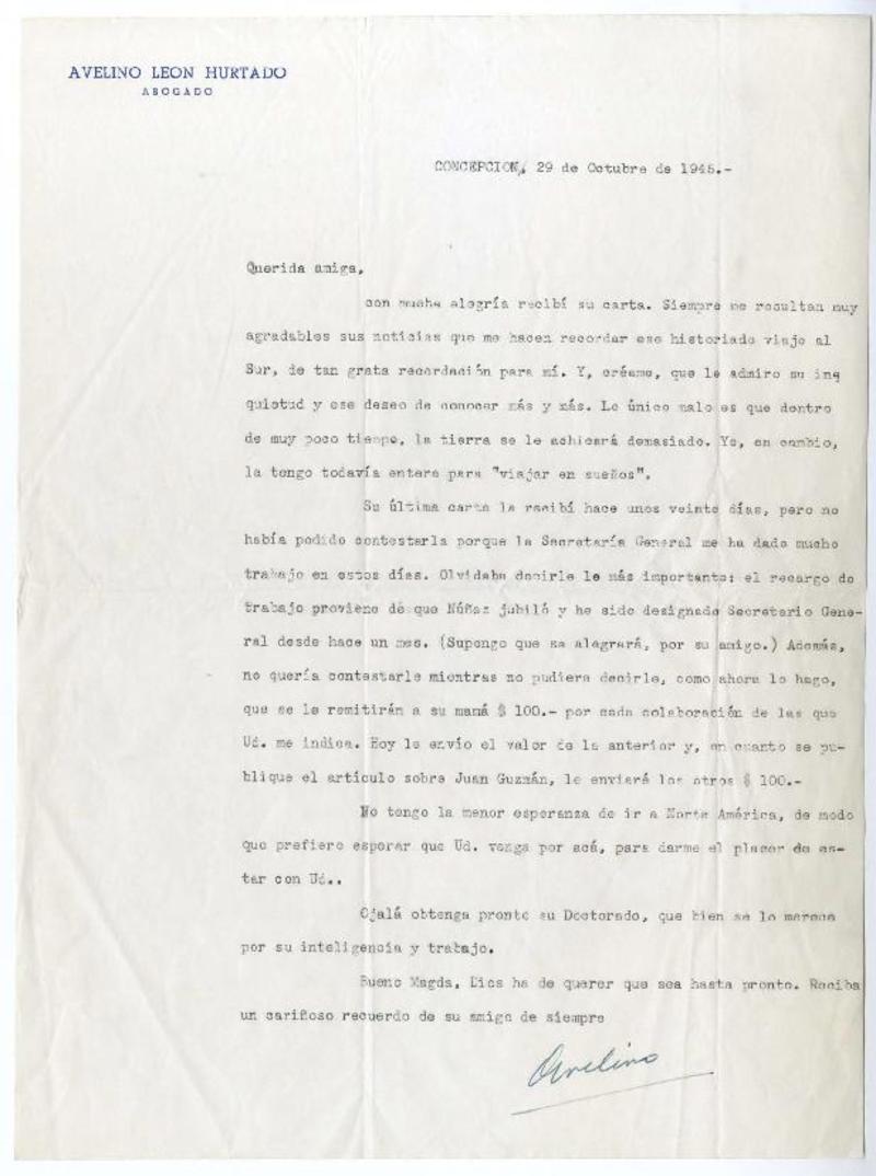 [Carta] 1955 noviembre 15, Concepción, Chile [a] Juan Marín [manuscrito] Avelino, León Hurtado.