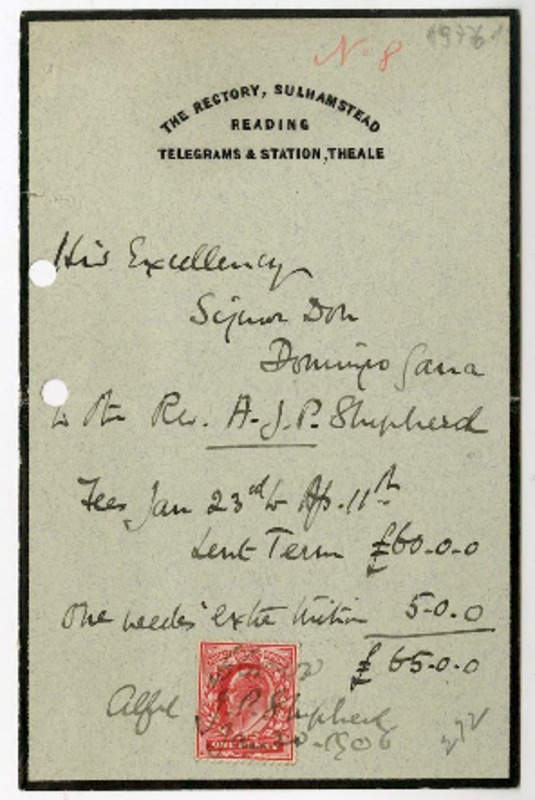 [Carta] 1906 abril 12, Sulhamstead, Inglaterra [al] Sr. Joaquín Edwards G. [manuscrito] Alfred Shepherd.