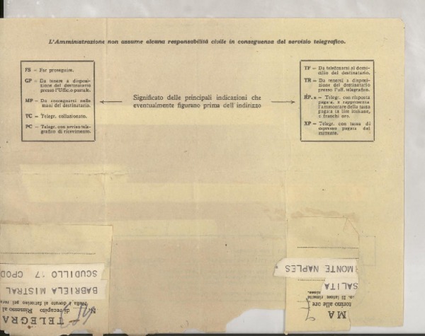 [Telegrama] 1952 jul. 4, Rapallo [a] Gabriela Mistral, Nápoles [manuscrito] Doris Dana.