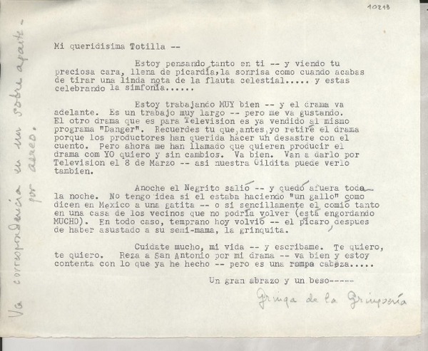 [Carta] [a] Totilla [manuscrito] Doris Dana.