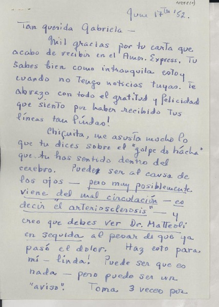 [Carta] 1952 June 17, Venezia, [Italia] [a] Gabriela [Mistral] [manuscrito] Doris [Dana].