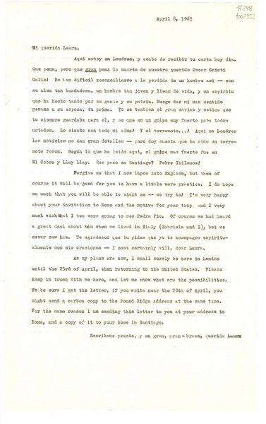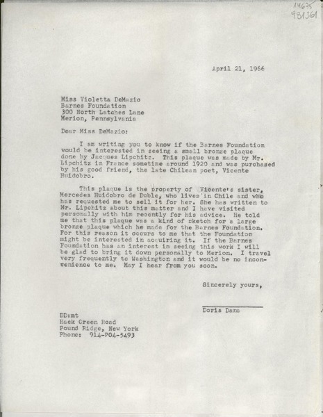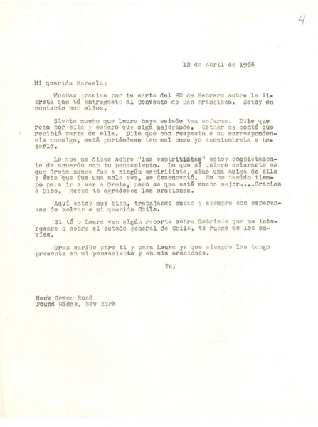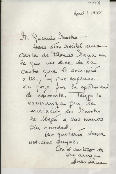 [Carta] 1948 Apr. 1, New York, [EE.UU.] [a] [Gabriela Mistral] [manuscrito] Doris Dana.