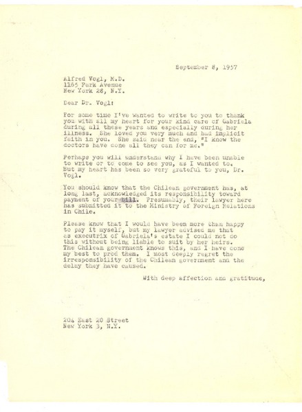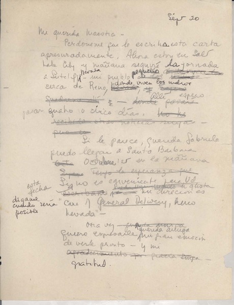 [Carta] 1948 sept. 20, New York [a] Gabriela Mistral [manuscrito] Doris Dana.
