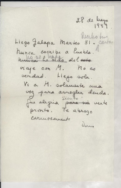 [Carta] 1949 mayo 28 [a] Gabriela Mistral [manuscrito] Doris Dana.