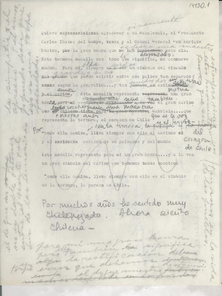 [Discurso] quiero agradecer vivamente a su excelencia_ [manuscrito] Doris Dana.