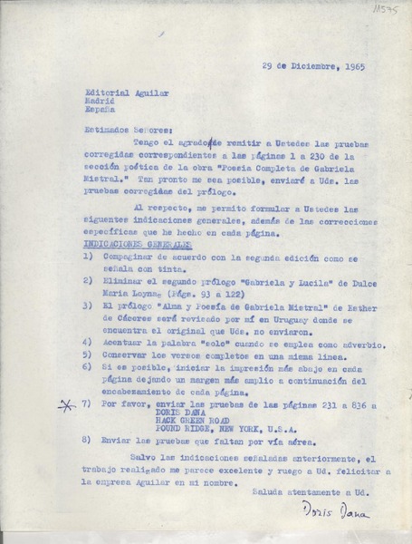 Mistral, Gabriela - Manuscritos estadounidenses - Dana, Doris - Correspondencia