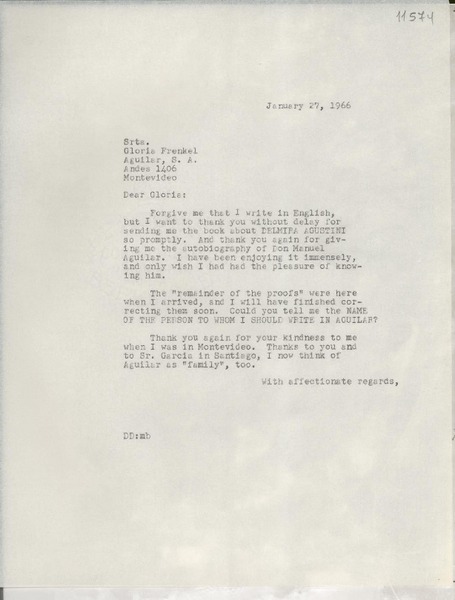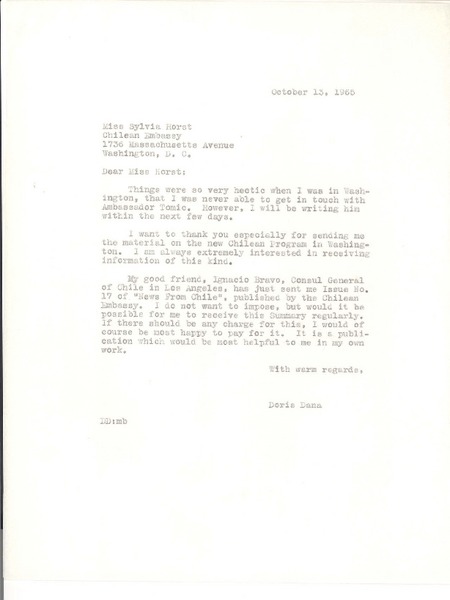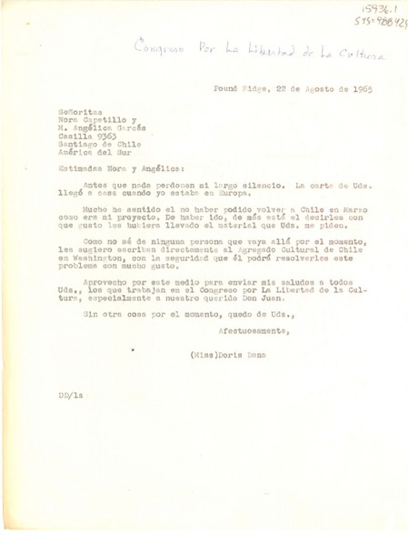 Dana, Doris - Correspondencia - Manuscritos estadounidenses - Ibáñez del Campo, Carlos