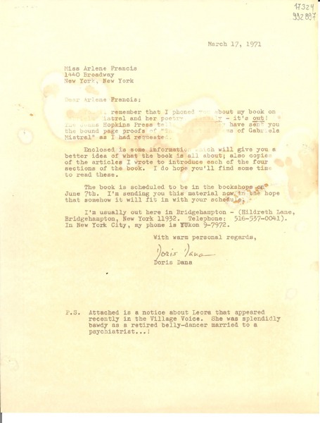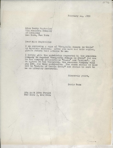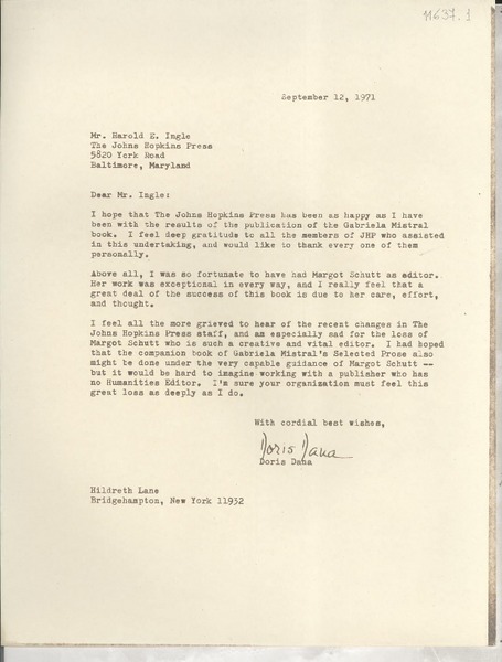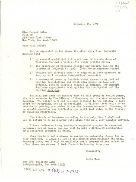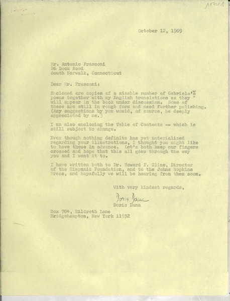 Dana, Doris - Correspondencia - Manuscritos estadounidenses