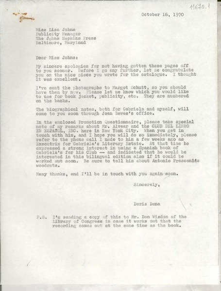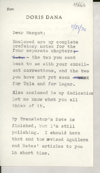 Lafuente, Mireya - Dana, Doris - Manuscritos estadounidenses - Correspondencia