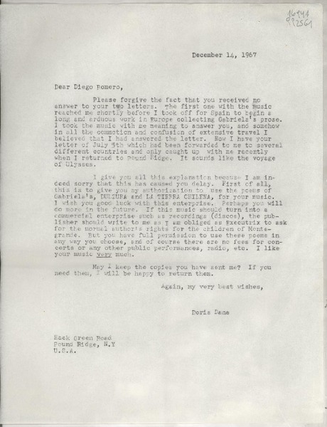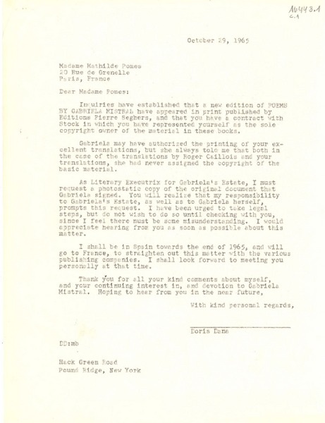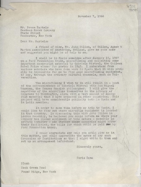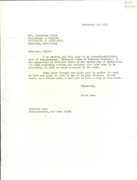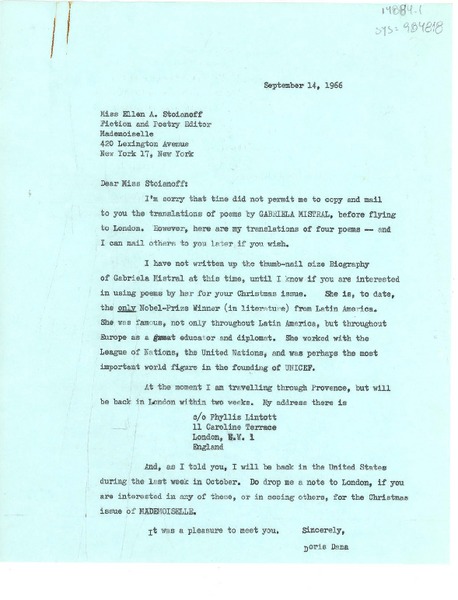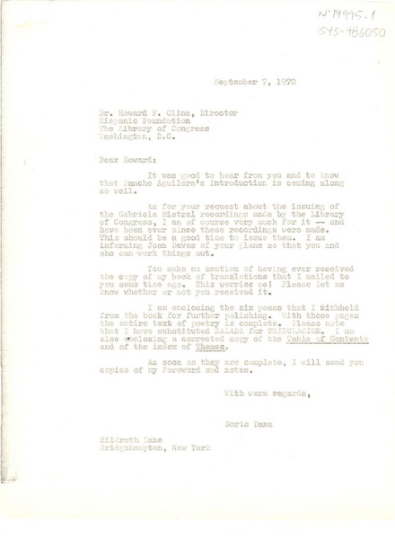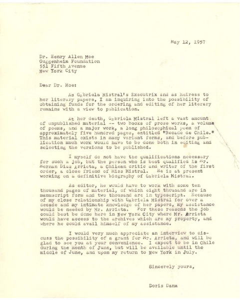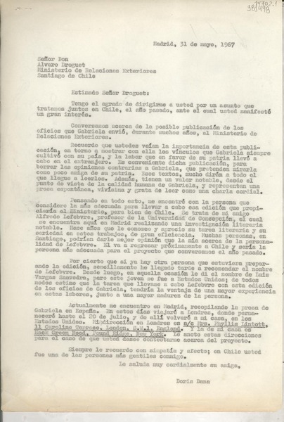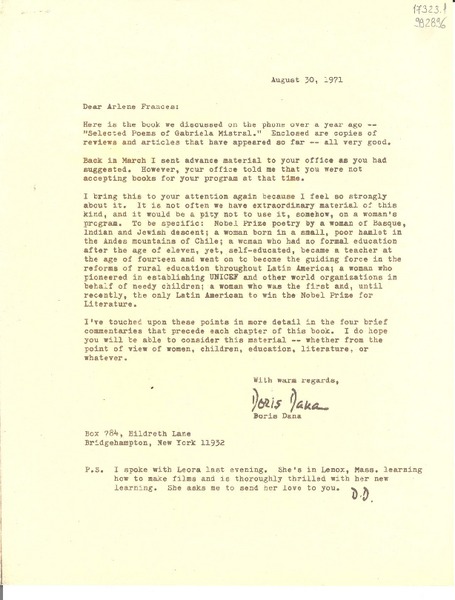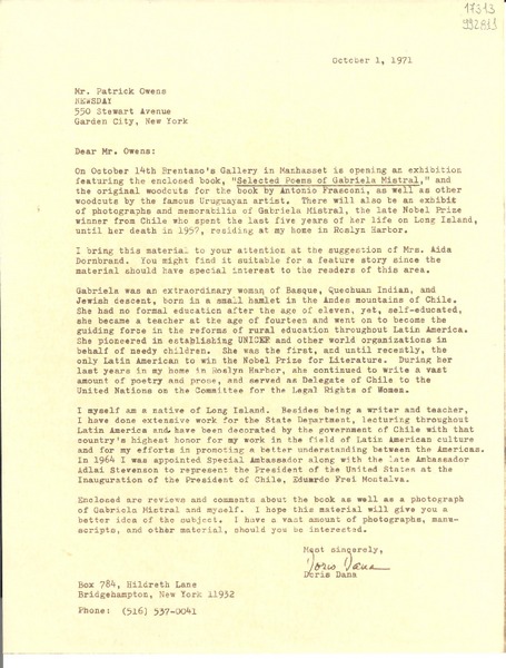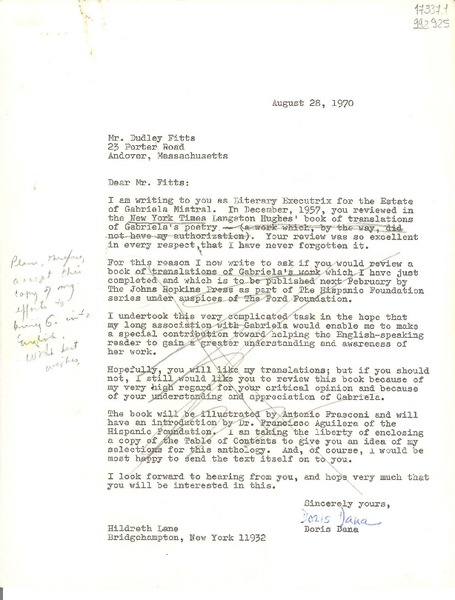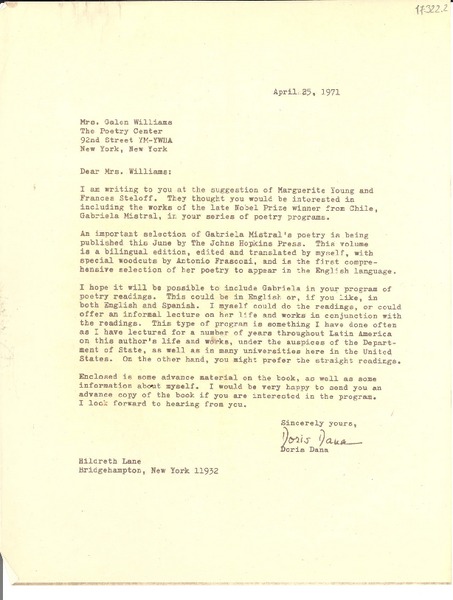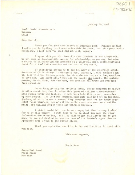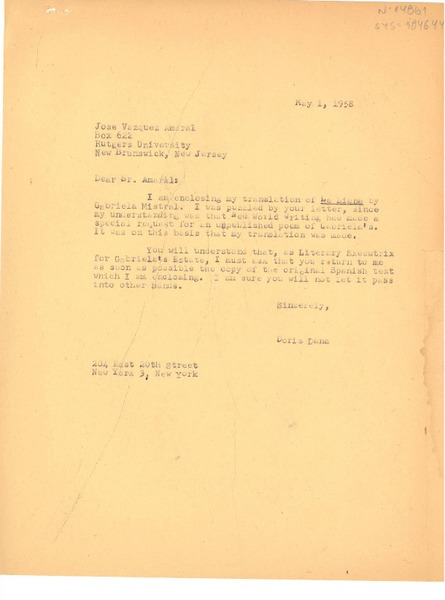 Dana, Doris - Manuscritos estadounidenses - Correspondencia - Mistral, Gabriela