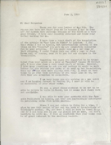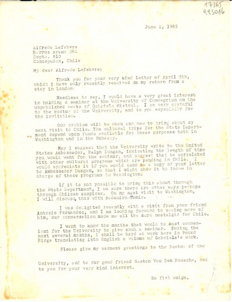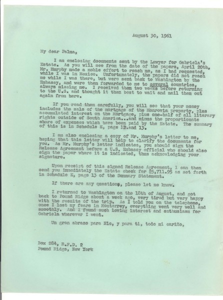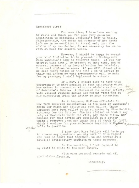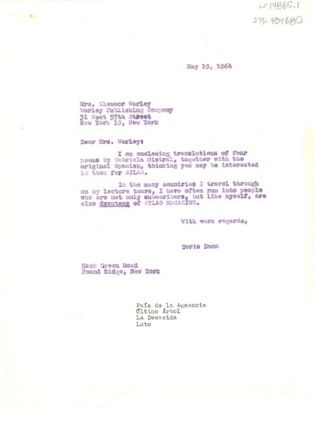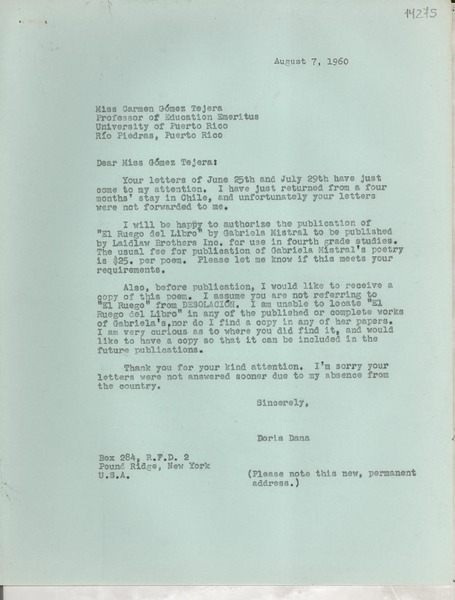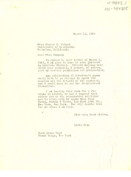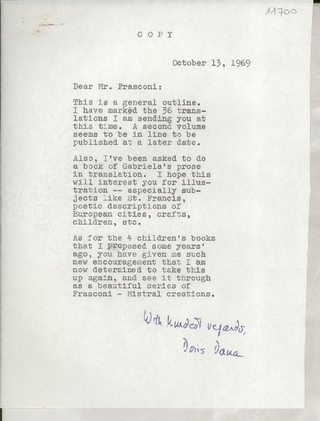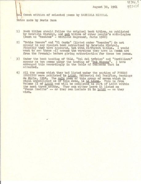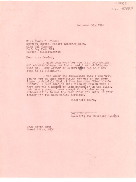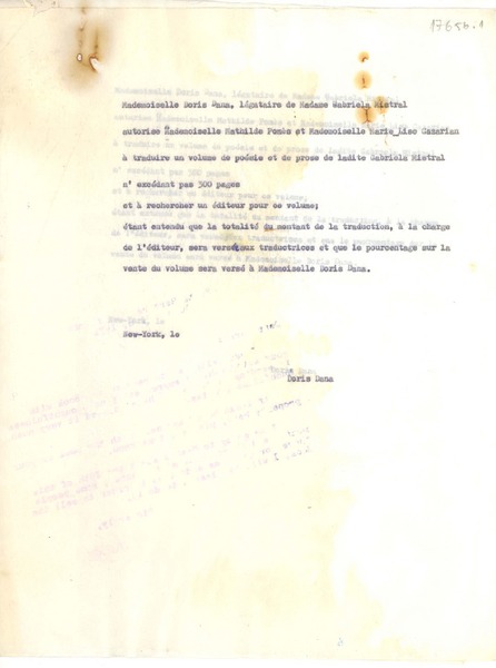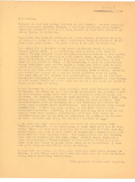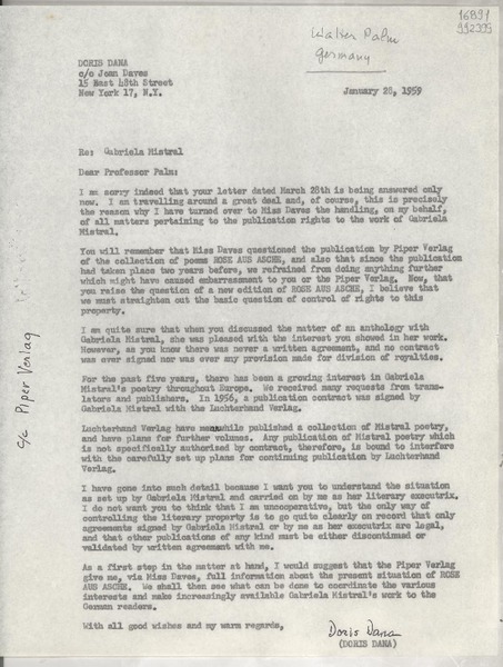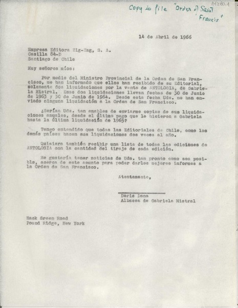 Dana, Doris - Manuscritos estadounidenses - Correspondencia - Mistral, Gabriela