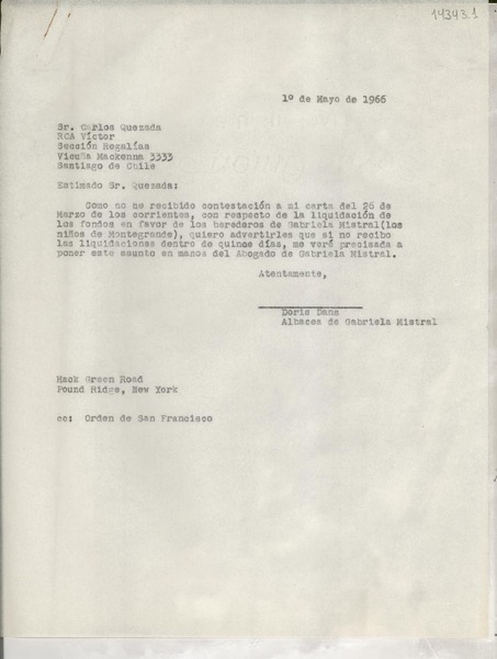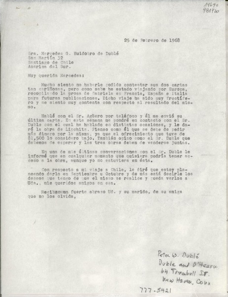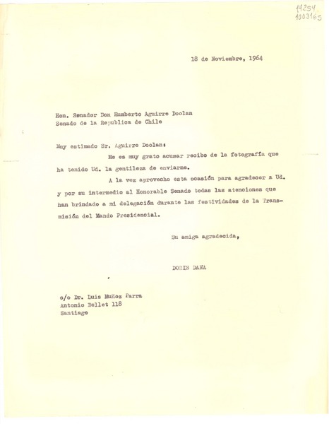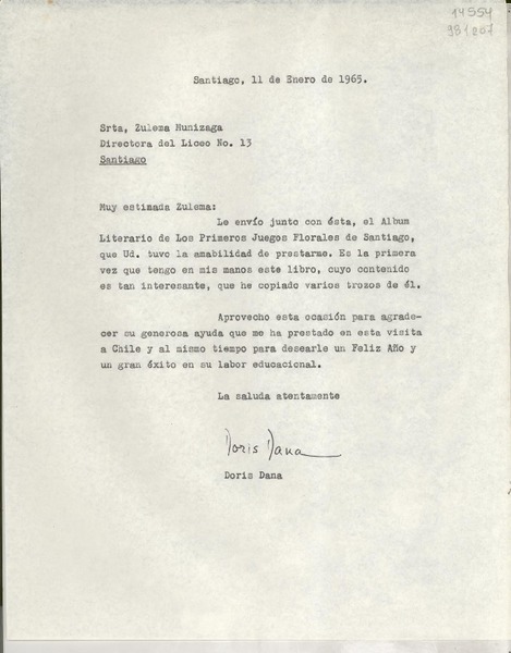 Zañartu, Ramón - Manuscritos estadounidenses - Correspondencia - Dana, Doris
